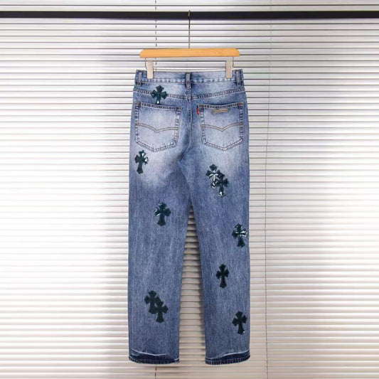 CHROME HEARTS BLUE CROSS PATCH JEANS DENIM