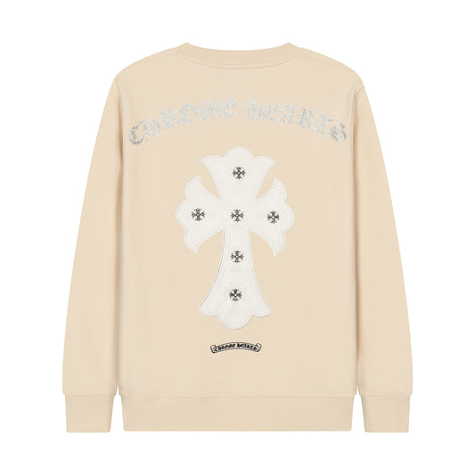 SWEAT-SHIRT BEIGE À ÉCUSSON CŒURS CHROMÉS ET CROIX BLANCHES