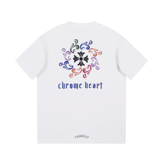 T-shirt blanc avec logo de fer à cheval multicolore Chrome Hearts