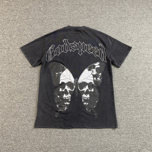 T-shirt effet papillon Godspeed noir délavé