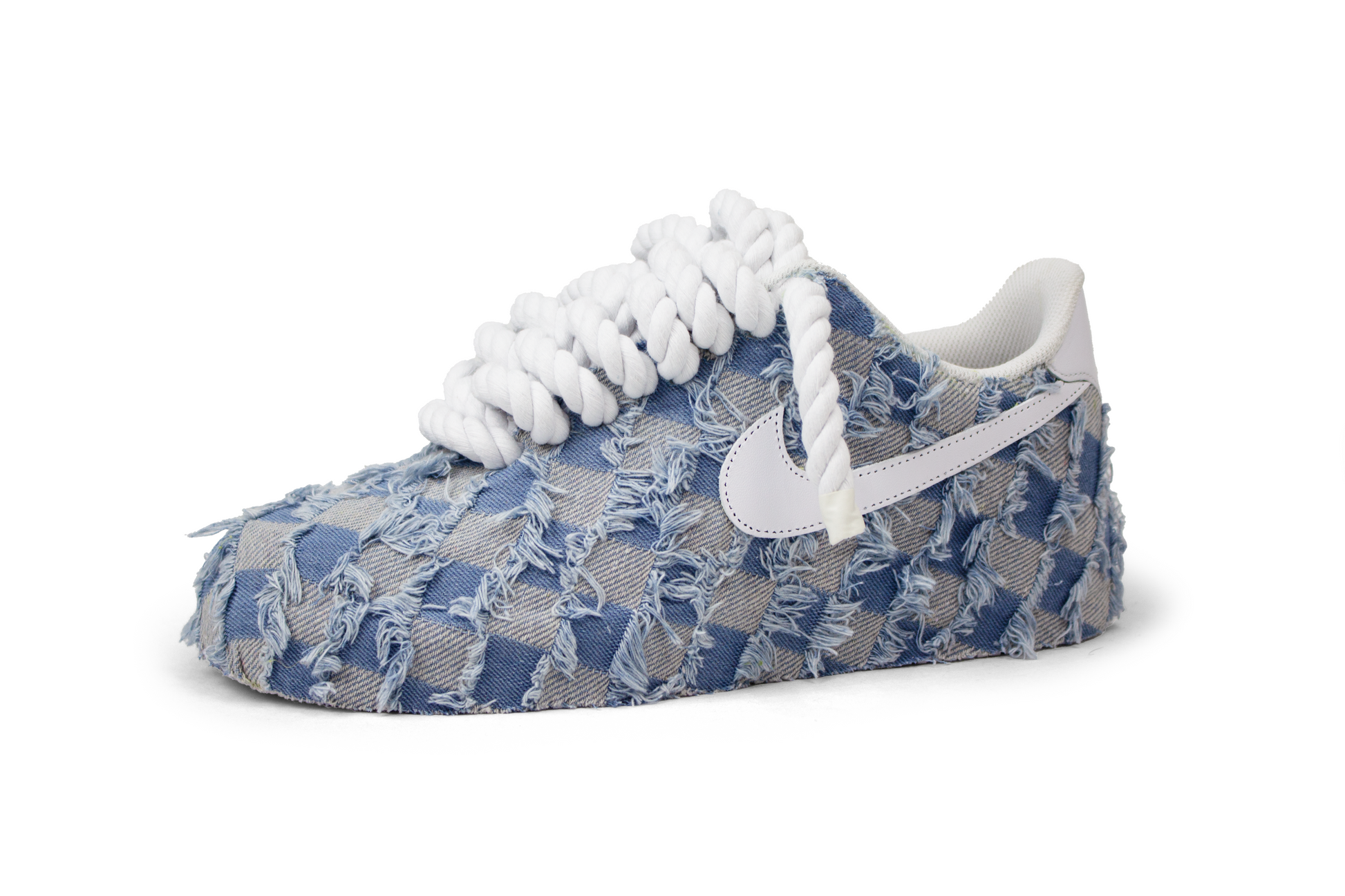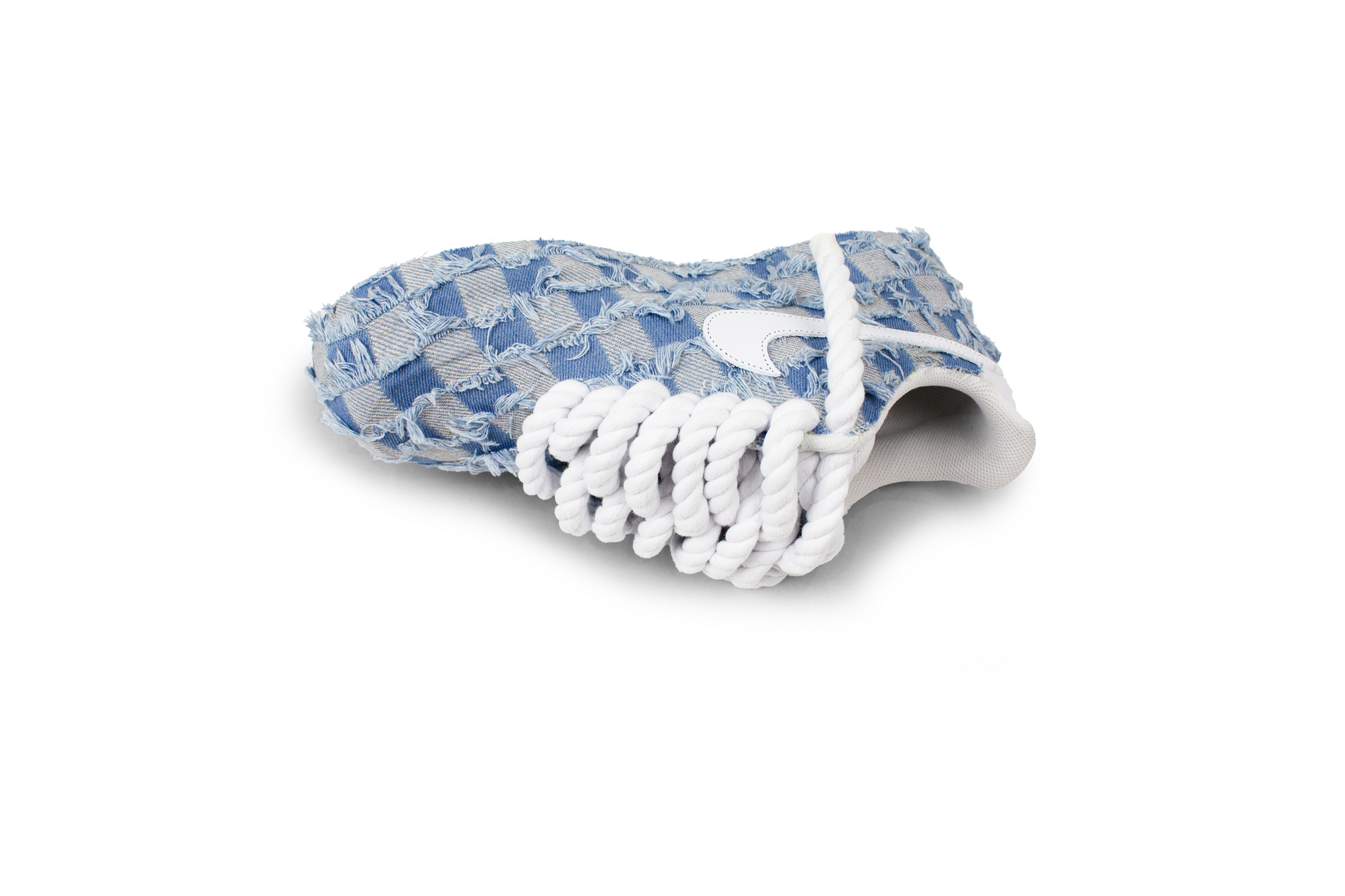 Tissu jean + lacets en corde blancs