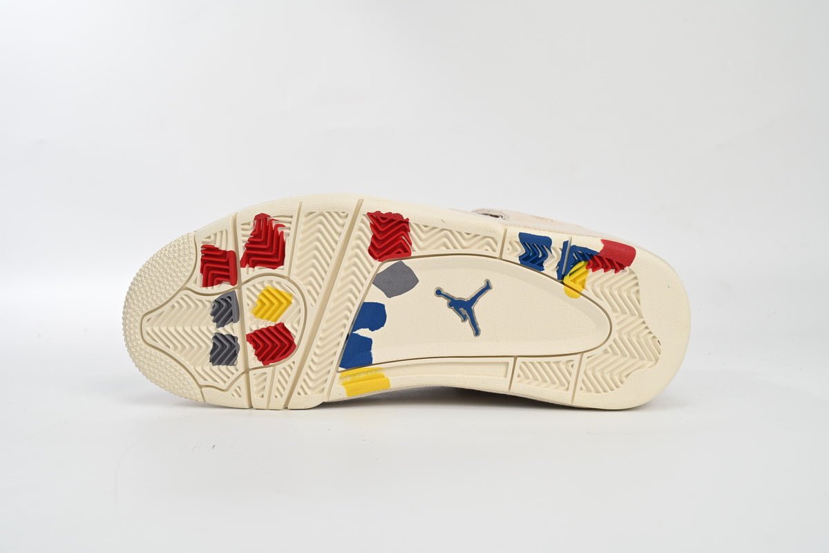 On retrouve les caractéristiques emblématiques de la Air Jordan 4, notamment les œillets en plastique iconiques et les empiècements en mesh sur les côtés pour une meilleure aération. La semelle intermédiaire intègre l'unité Air-Sole, offrant un amorti réactif et un confort optimal à chaque pas.
