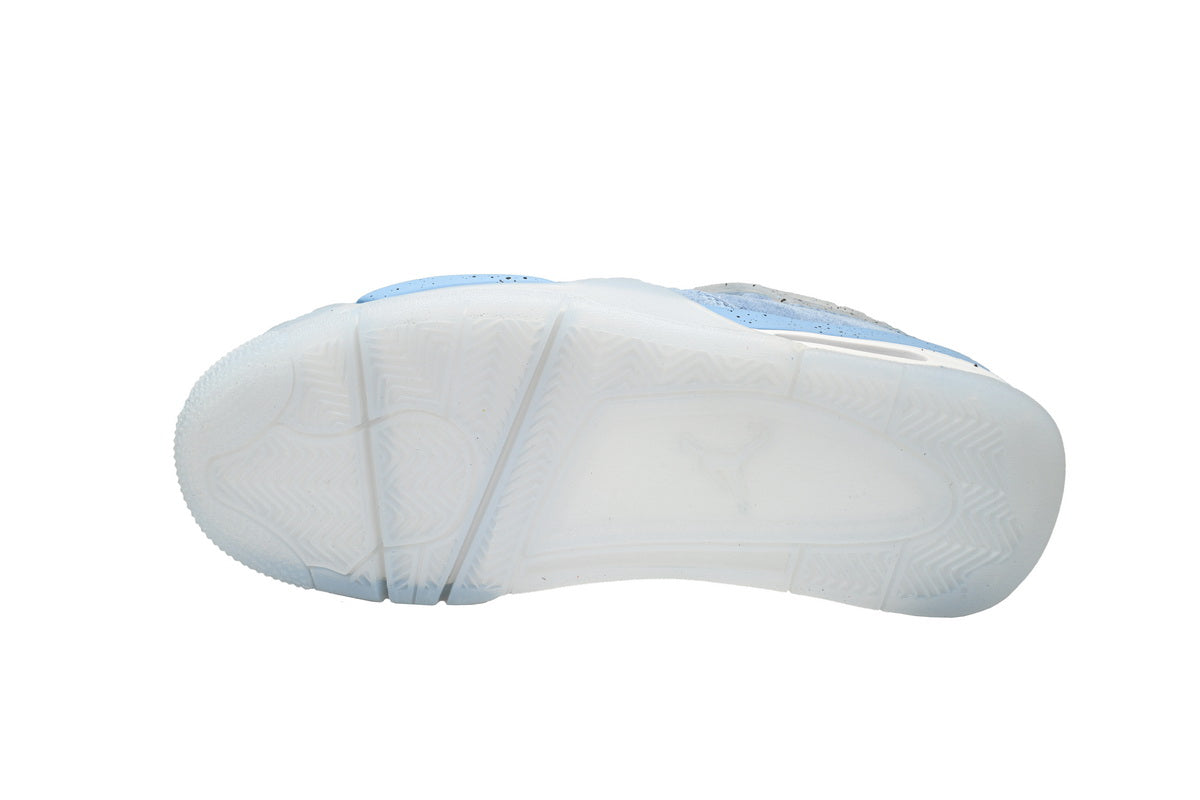 Conçue pour un confort et une durabilité optimaux, la Air Jordan 4 Retro UNC intègre des unités Air-Sole visibles au talon et à l'avant-pied, offrant un amorti réactif pour un confort durable. La semelle intermédiaire blanche est ornée de détails mouchetés, tandis que la semelle extérieure, mêlant le bleu et le blanc, présente un motif à chevrons pour une adhérence accrue sur toutes les surfaces.