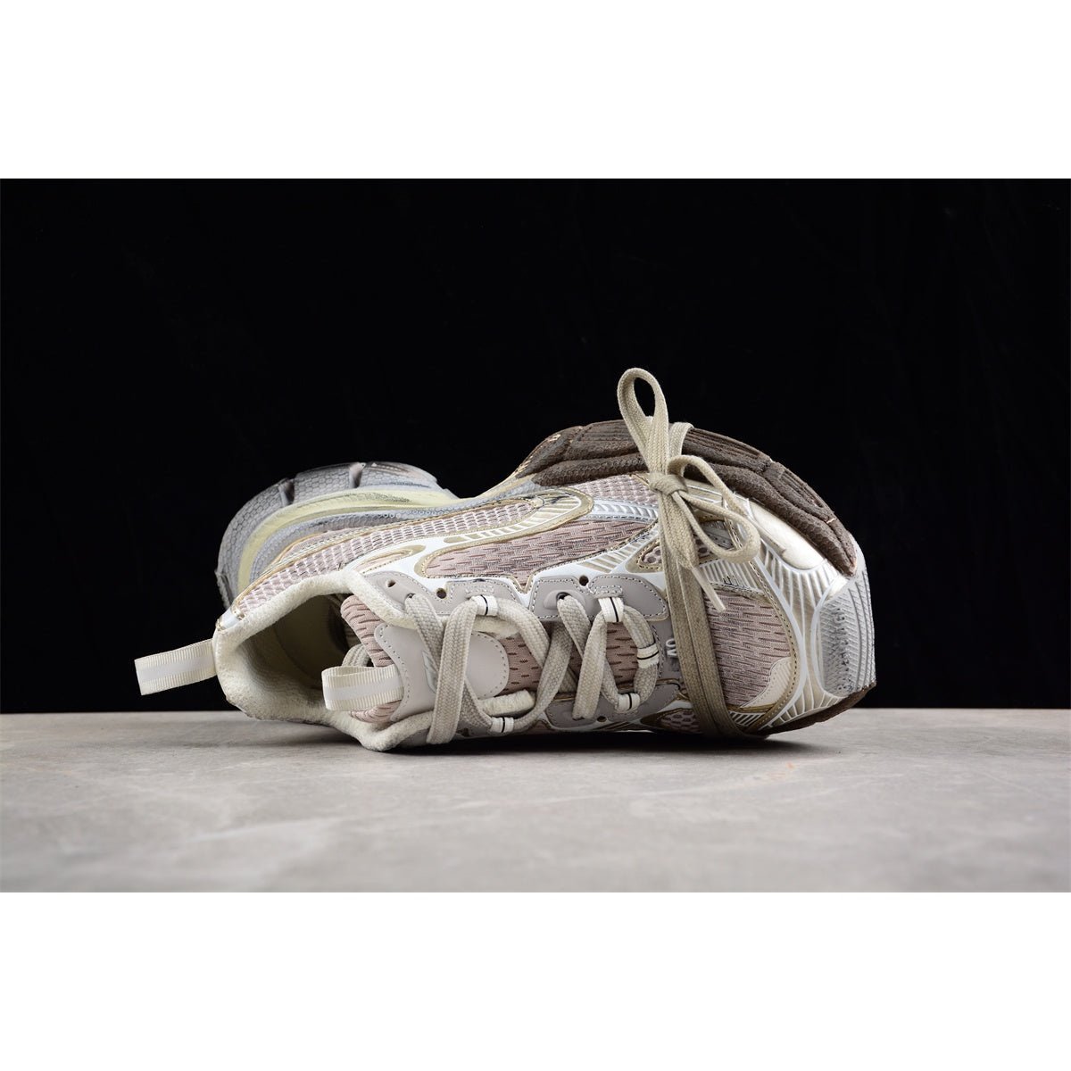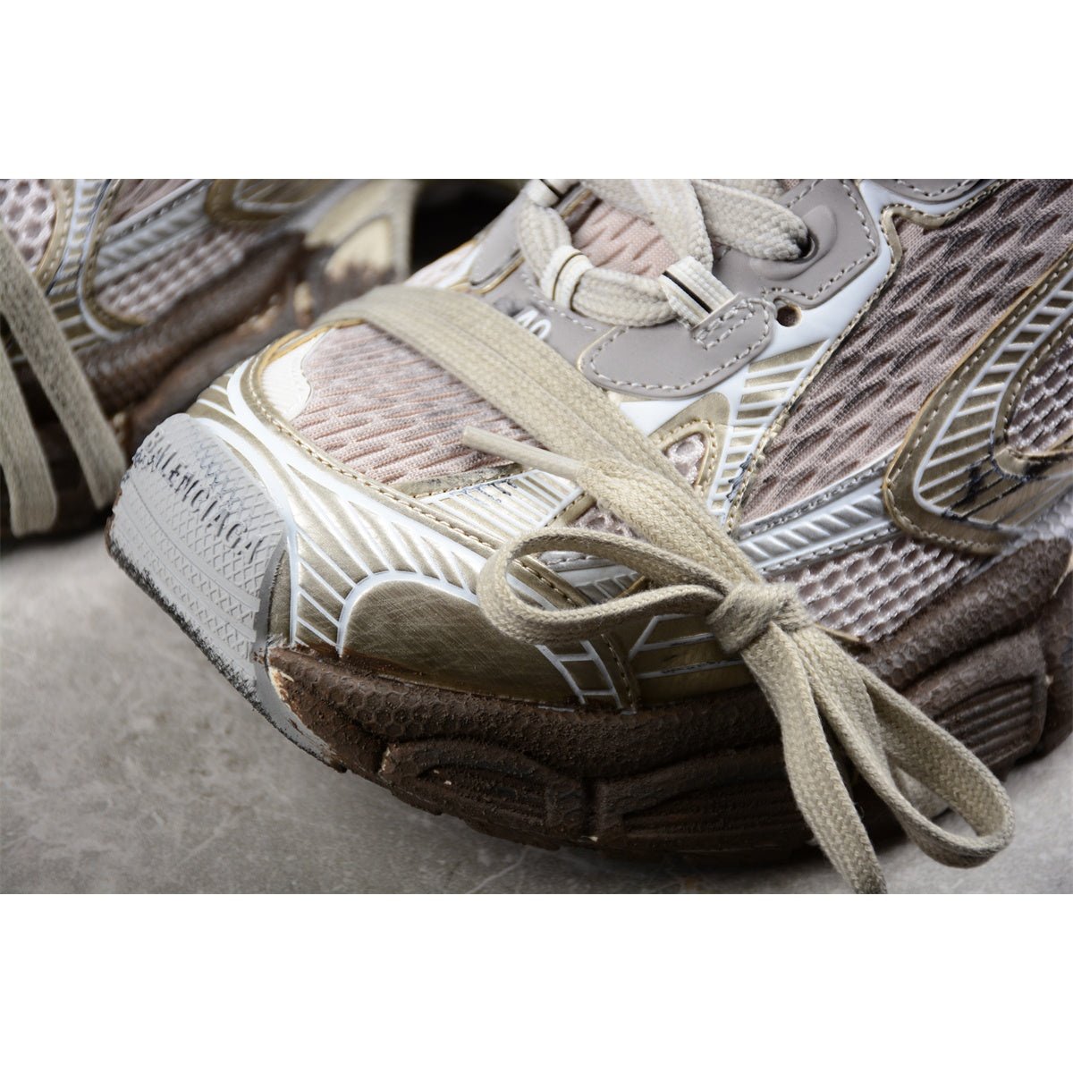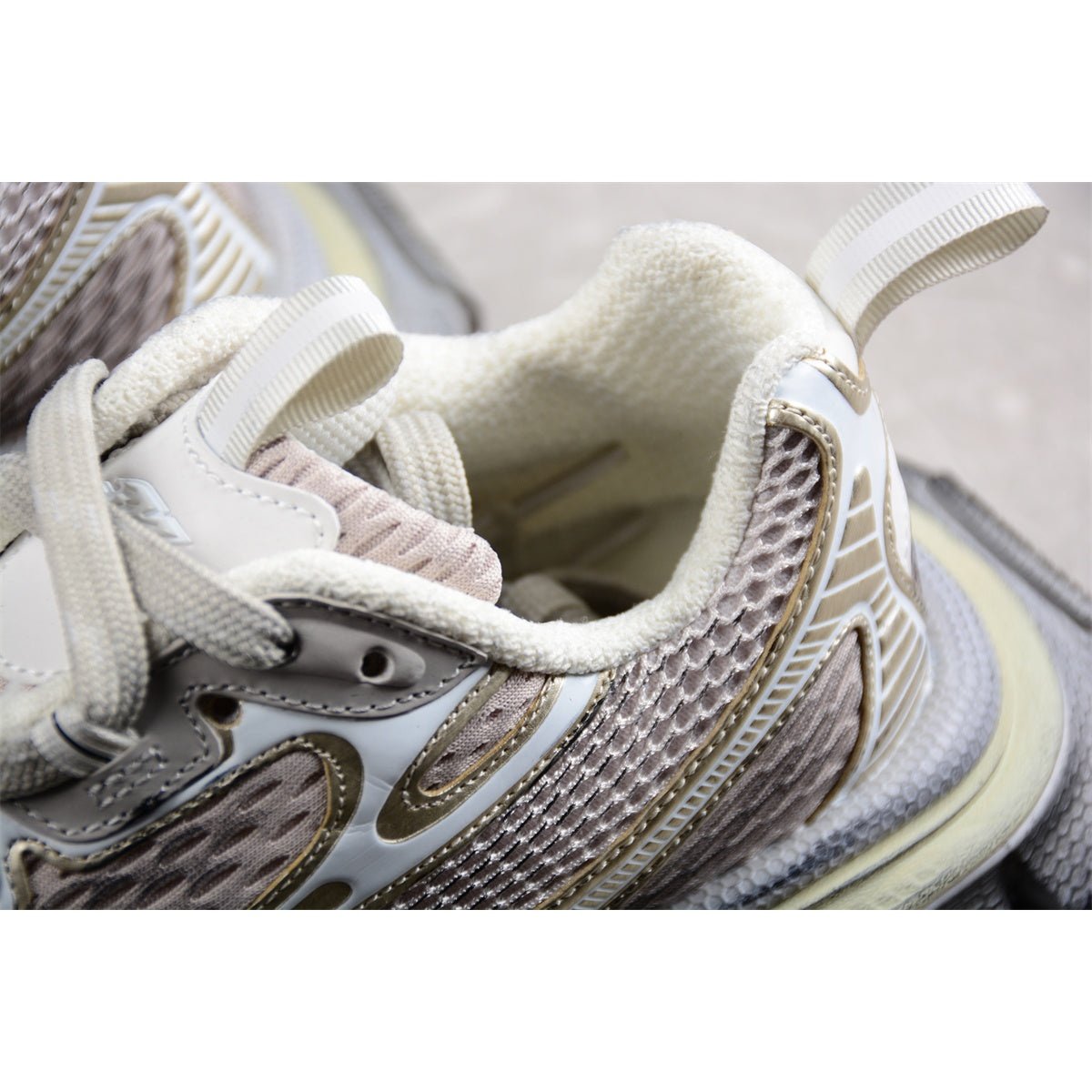 Découvrez la BALENCIAGA 3XL Champagne Graffiti, un mariage audacieux entre luxe et art urbain. Ces sneakers oversize arborent une élégante base champagne rehaussée de motifs graffiti vibrants, pour un style affirmé et unique. Confectionnées en mesh et cuir de haute qualité, elles allient durabilité et respirabilité. Leur semelle épaisse et imposante assure un confort et un maintien exceptionnels, parfaits pour être portées toute la journée. Le logo Balenciaga emblématique sur la languette et le talon apporte une touche de sophistication. Idéales pour les personnes à la pointe de la mode, les BALENCIAGA 3XL Champagne Graffiti fusionnent avec brio design avant-gardiste et esprit urbain, affirmant ainsi leur style dans toutes les garde-robes.