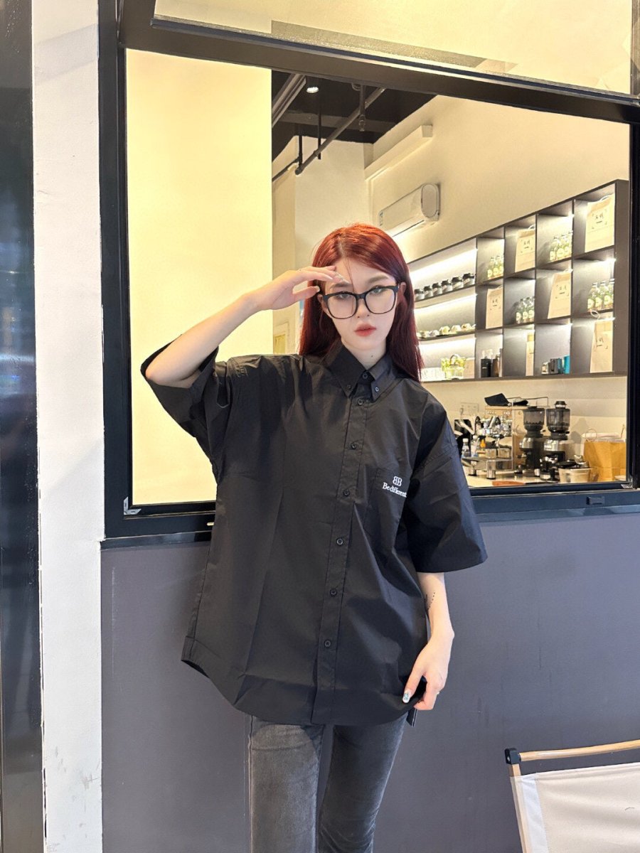 Cette chemise noire sophistiquée de Balenciaga fait partie de la campagne « Be Different », qui met l'accent sur l'individualité et le style. Elle présente une coupe élégante boutonnée, un col pointu et des manches courtes, ce qui la rend adaptée aux occasions décontractées comme aux occasions formelles. La poche gauche est ornée du logo de la campagne, « Be different », en un imprimé discret et contrasté. Cette pièce allie un savoir-faire classique à un message moderne, idéal pour celles et ceux qui souhaitent affirmer leur personnalité par leurs choix vestimentaires.