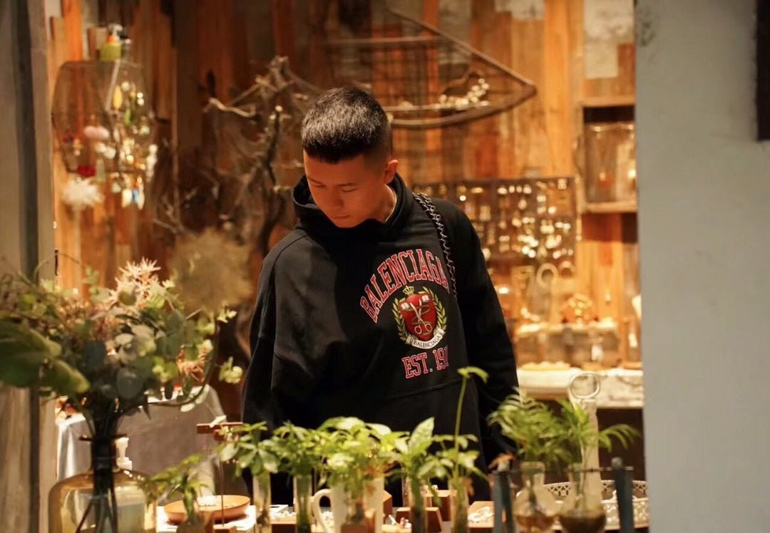 Ce sweat à capuche Balenciaga arbore un écusson rouge et or imposant, mettant en valeur le nom de la marque et l'année de sa fondation, « 1917 ». Le graphisme audacieux se détache sur le fond noir, lui conférant un style vintage. Confectionné dans des matières haut de gamme, ce sweat à capuche allie confort et durabilité. Il est doté d'une capuche à cordon et d'une poche avant, ajoutant ainsi une touche de fonctionnalité à son design élégant. Parfait pour un style décontracté, ce sweat à capuche associe l'héritage de Balenciaga à l'esprit du streetwear contemporain.