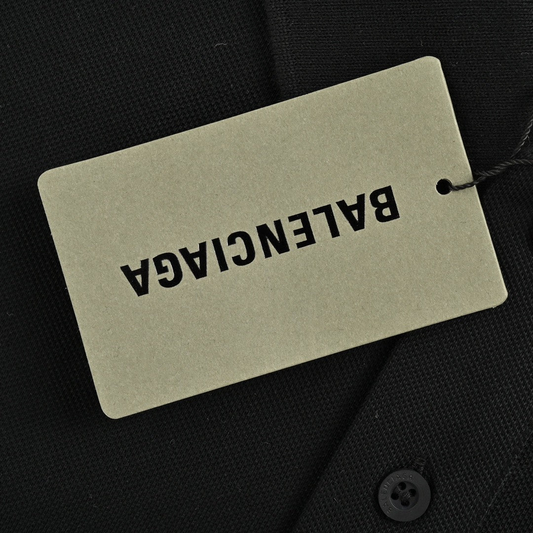 Ce polo Balenciaga noir arbore une coupe classique avec une patte de boutonnage et un col. Le logo Balenciaga est brodé en blanc sur la poitrine, créant un contraste saisissant avec le tissu noir. Minimaliste et polyvalent, ce polo est idéal pour les occasions décontractées comme pour les tenues chics décontractées.