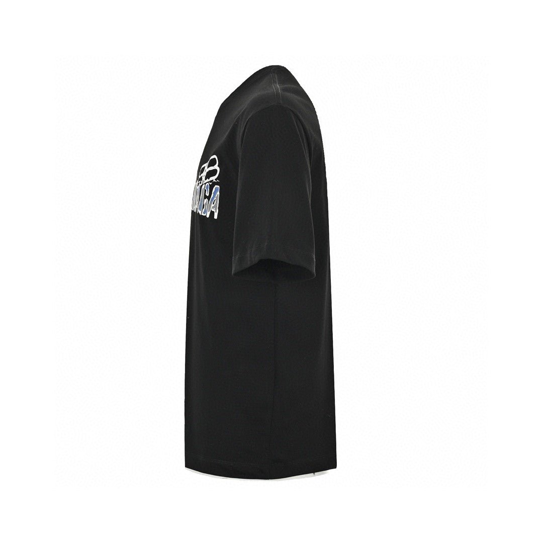 Le t-shirt Balenciaga à logo graphique noir est une pièce chic et contemporaine qui illustre à merveille l'esthétique moderne de la marque. Confectionné en coton de qualité supérieure, ce t-shirt offre un confort optimal et une coupe décontractée. Il arbore un imprimé graphique saisissant du logo Balenciaga sur la poitrine, dont les nuances de bleu et de blanc contrastent avec le fond noir. Son col rond et ses manches courtes lui confèrent une grande polyvalence, en faisant un choix idéal pour un look casual ou comme pièce élégante à porter sous une veste. Ce t-shirt incarne parfaitement l'alliance du confort et de l'avant-garde de la mode chez Balenciaga.