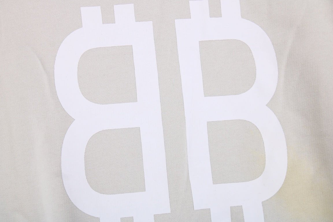 Sweat à capuche gris clair avec logo double B blanc sur la poitrine. Coupe confortable et décontractée. Poche kangourou et capuche à cordon. Idéal pour un look casual et stylé.