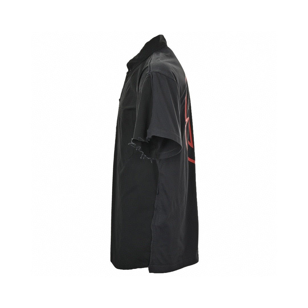 La chemise Balenciaga noire à logo graphique au dos arbore un logo rouge audacieux, pour un style résolument contemporain. Confectionnée dans des matières haut de gamme, cette chemise à manches courtes allie confort et résistance. Son design unique est idéal pour affirmer votre style tout en conservant une allure élégante et moderne. Parfaite pour les sorties décontractées ou pour apporter une touche d'originalité à des tenues plus habillées.