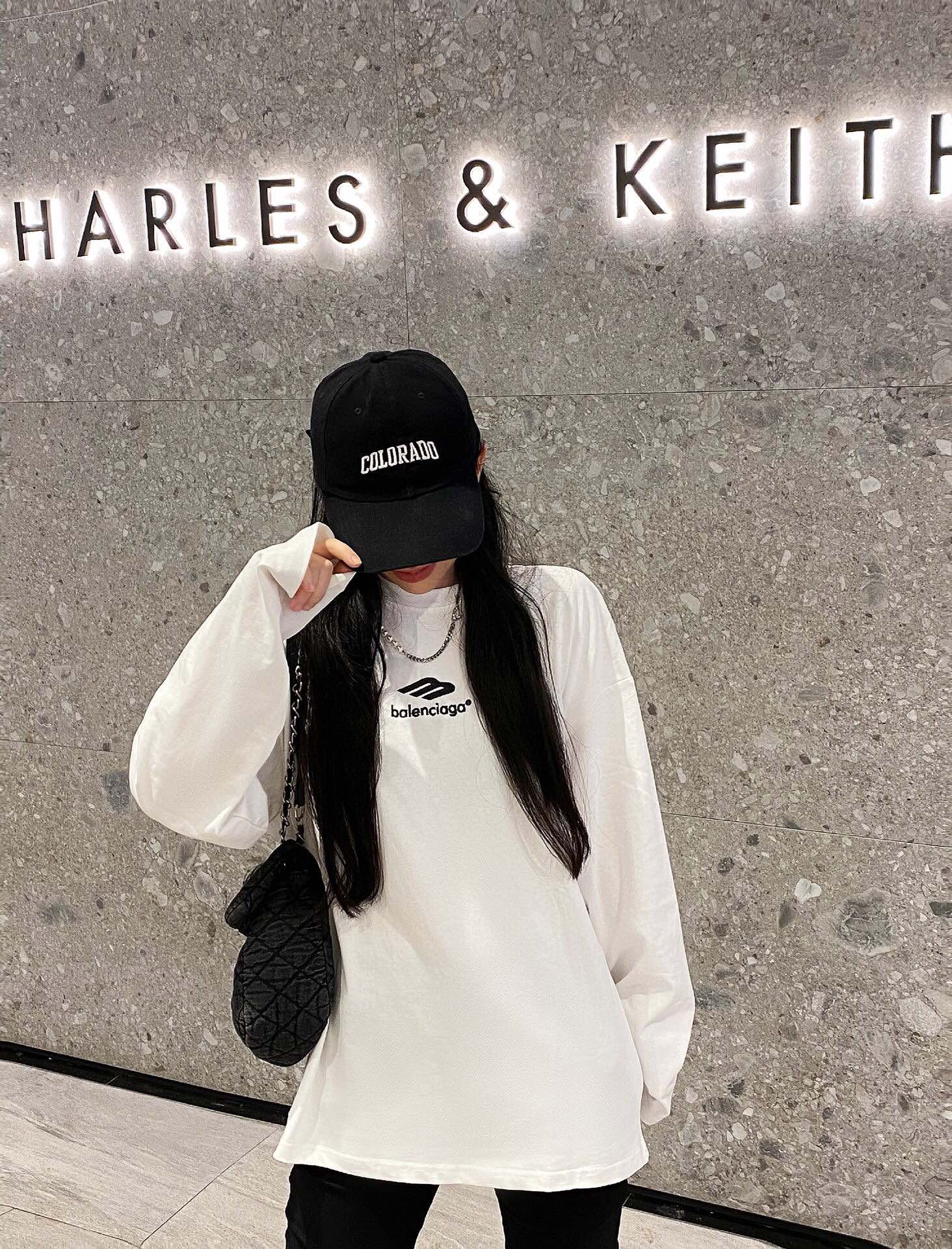T-shirt blanc à manches longues avec logo Balenciaga noir sur la poitrine. Design simple et minimaliste. Coupe confortable, idéal au quotidien.