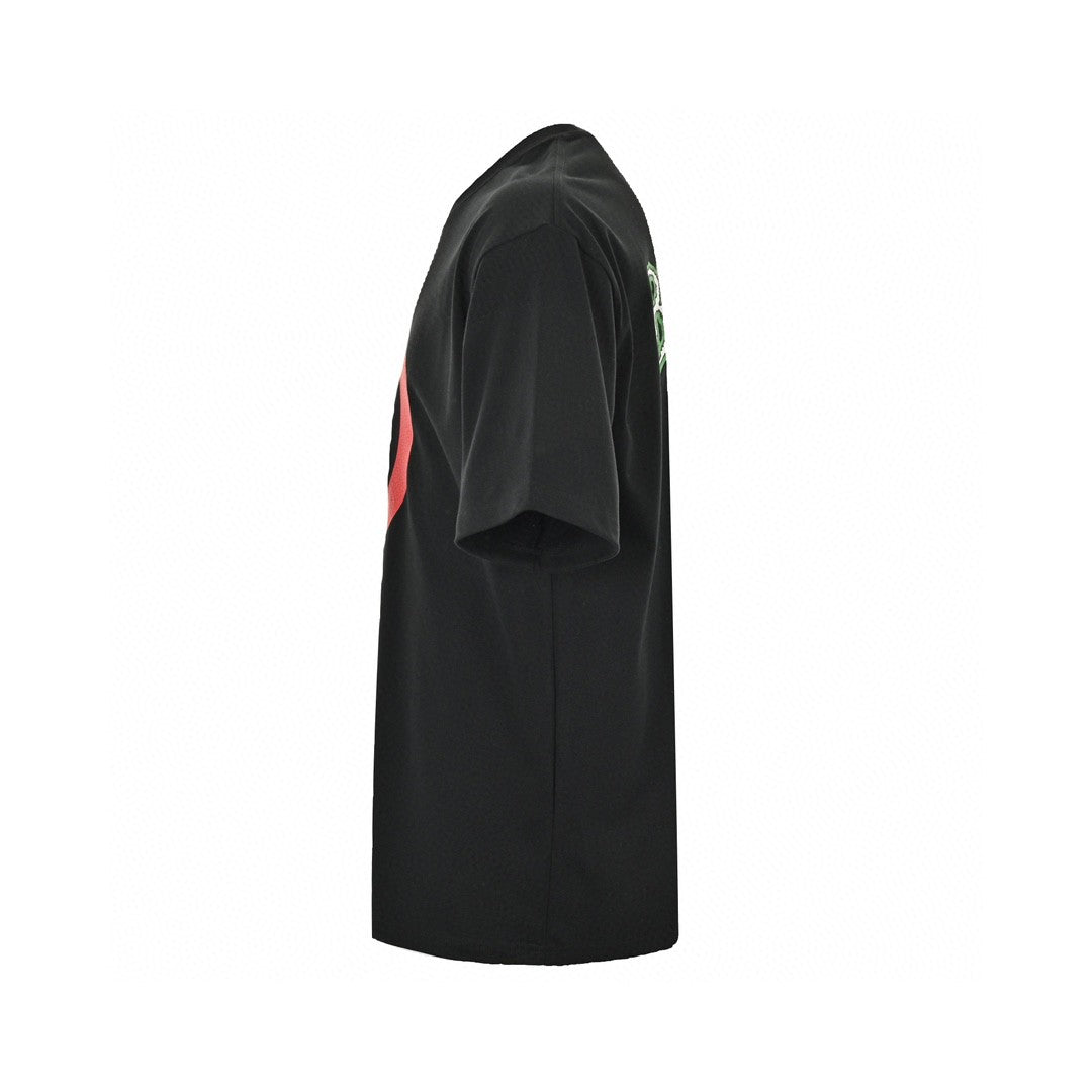 Ce t-shirt Balenciaga arbore un design saisissant : un grand symbole rouge de la prohibition orne le devant. Le tissu noir offre un contraste audacieux à ce motif percutant. Juste en dessous, le logo Balenciaga, discrètement placé, apporte une touche de signature à ce design minimaliste et pourtant captivant. Idéal pour celles et ceux qui apprécient les looks modernes et avant-gardistes.