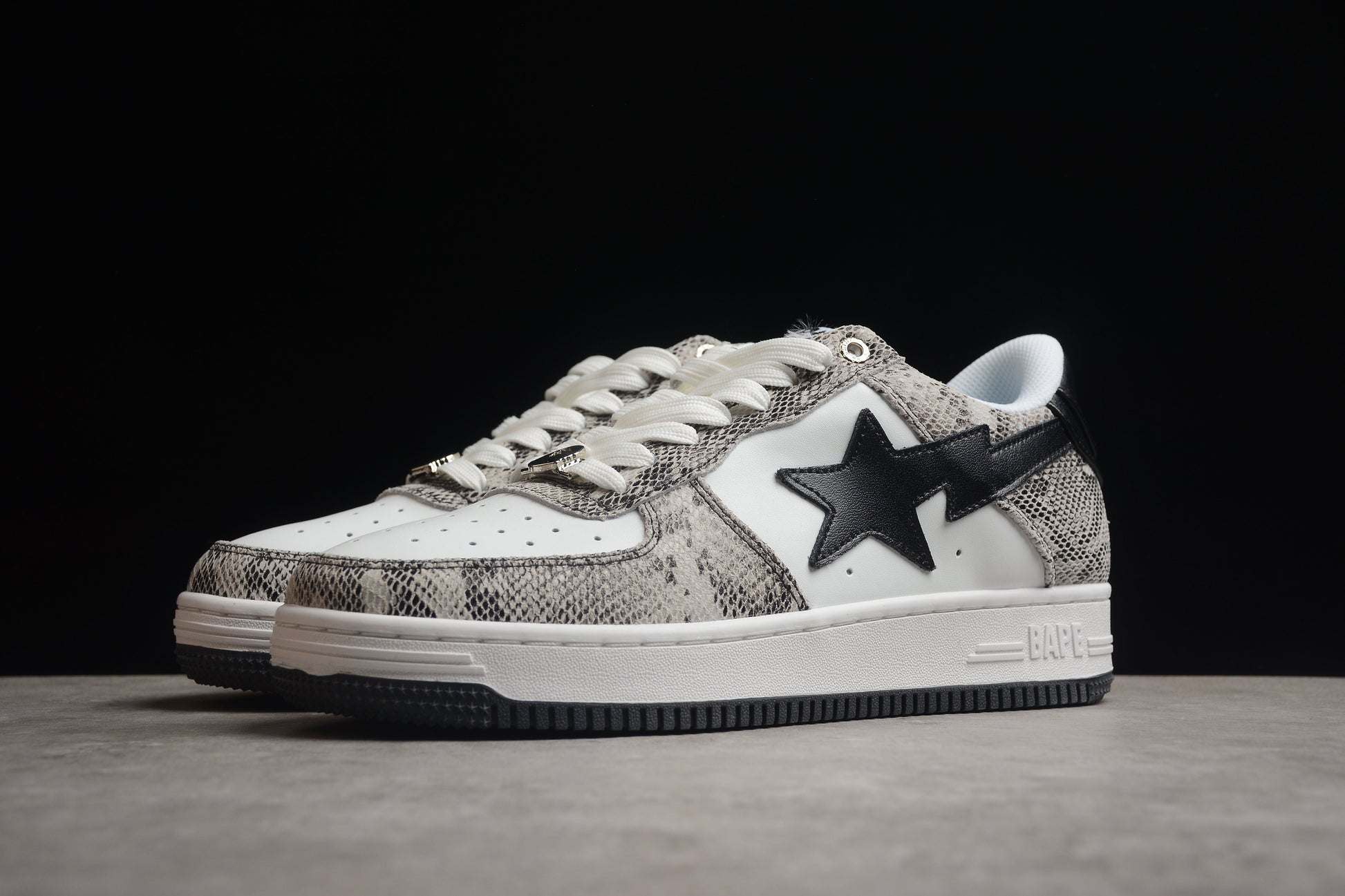 Affirmez votre style avec les baskets basses BAPE STA à motif serpent. Plus que de simples chaussures, ces baskets sont l'expression même de votre personnalité et de votre style, idéales pour vous démarquer. Apportez une touche d'audace et de sophistication à votre garde-robe grâce à cette paire de baskets exceptionnelle.