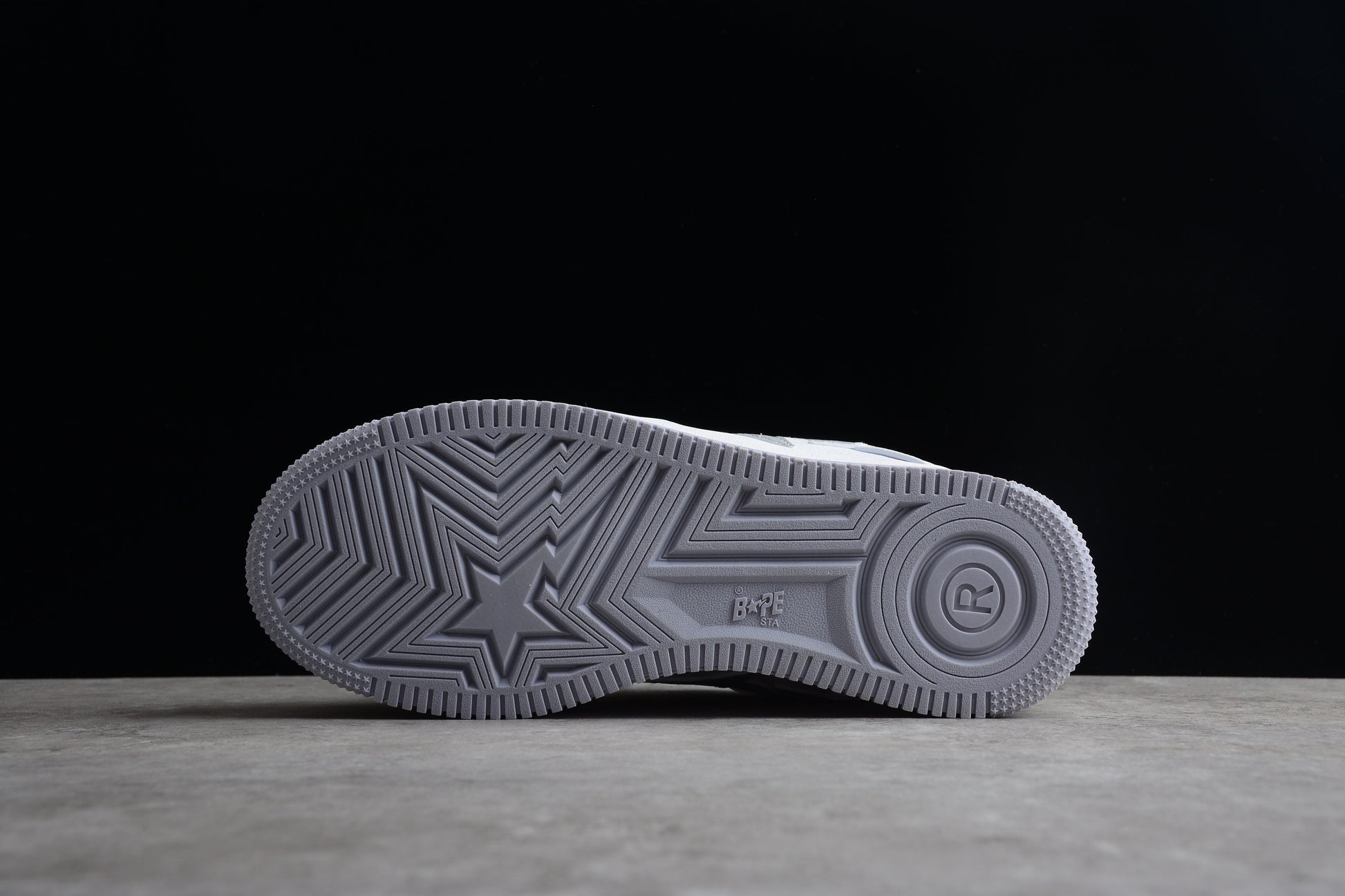 Découvrez les baskets basses BAPE STA blanches et grises, une alliance parfaite entre design intemporel et détails dynamiques. Elles sont conçues pour celles et ceux qui apprécient le style classique revisité.