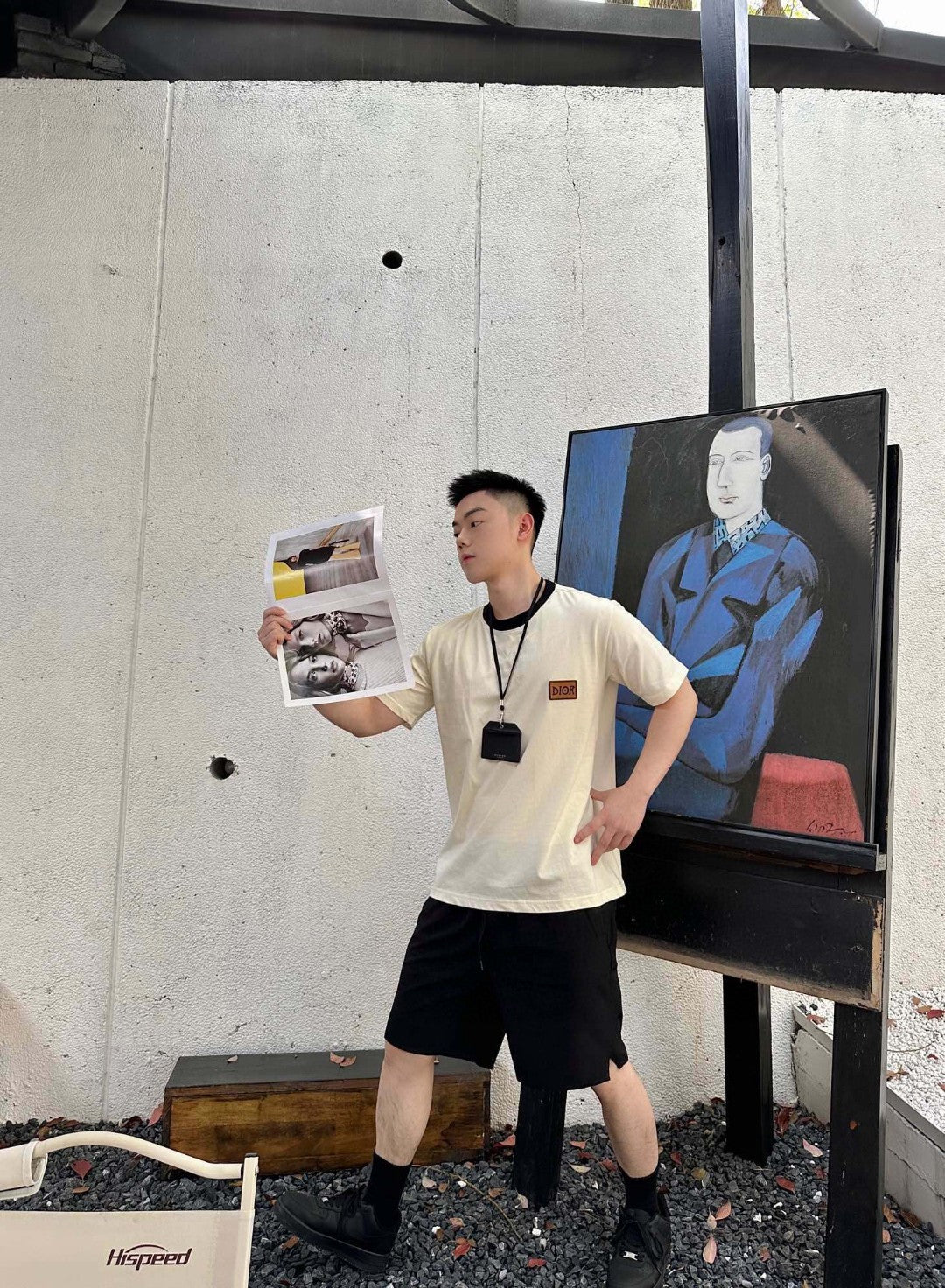 T-shirt crème Dior avec bordure noire