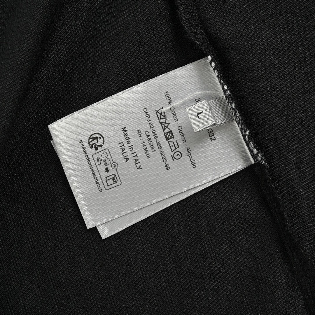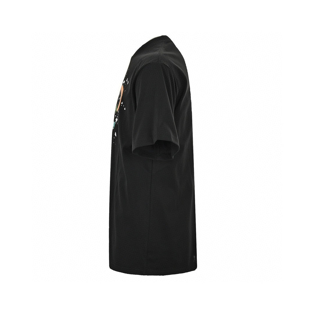 Ce t-shirt Dior arbore un logo « Dior » multicolore éclatant, rehaussé d'éclaboussures de peinture sur le devant. Majoritairement noir, il offre une coupe décontractée, des manches courtes et un col montant. Idéal pour apporter une touche artistique et ludique à vos tenues casual tout en privilégiant le confort.