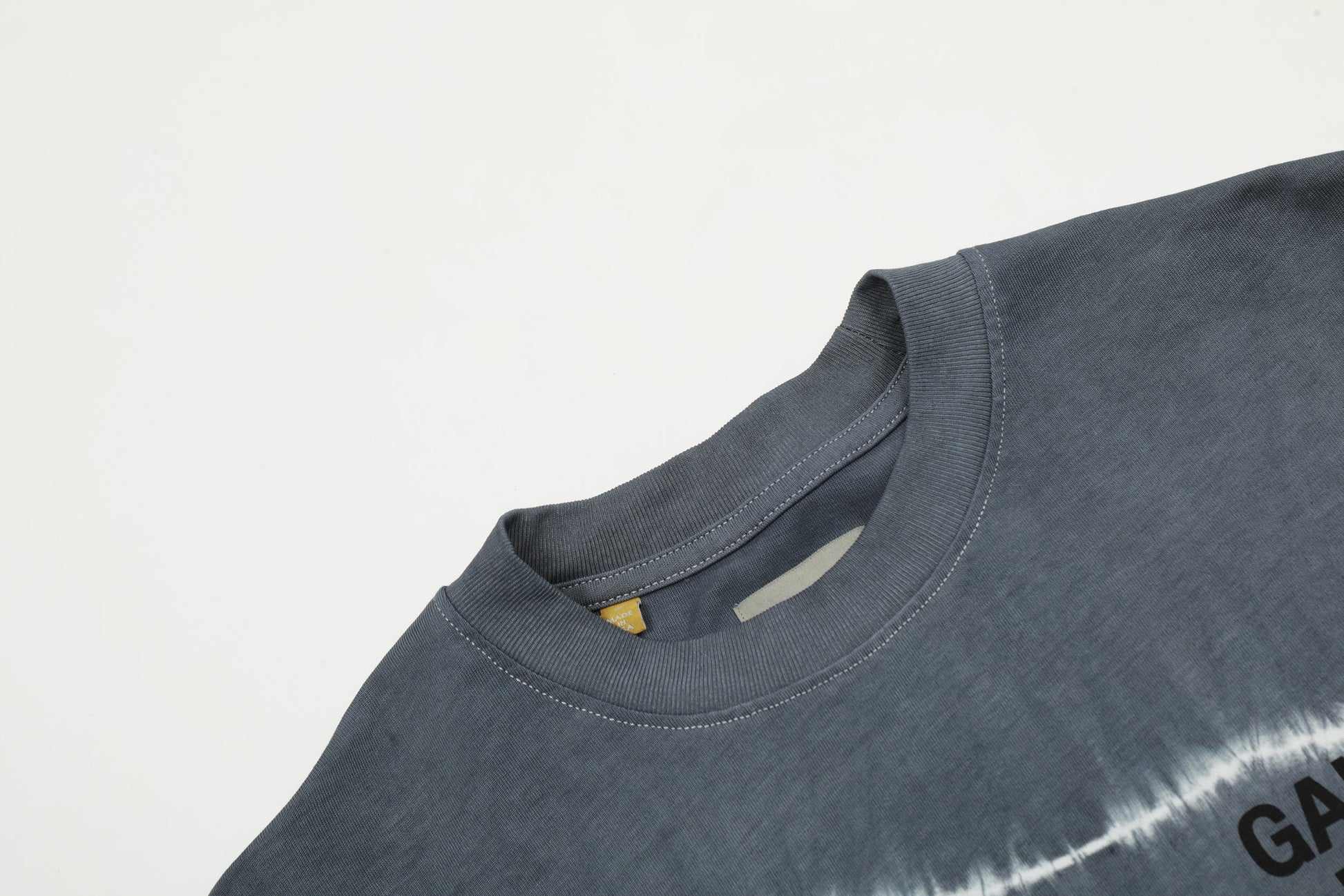 Le motif tie-dye saisissant, dans des tons de bleu et de blanc, crée un style unique et attrayant, garantissant que chaque pièce est différente. Au dos du t-shirt, l'inscription « GALLERY DEPT. HOLLYWOOD, CA » apparaît en lettres noires audacieuses, un clin d'œil aux racines créatives et à l'héritage artistique de la marque. Ce détail graphique rehausse l'esthétique générale et affirme un style fort.