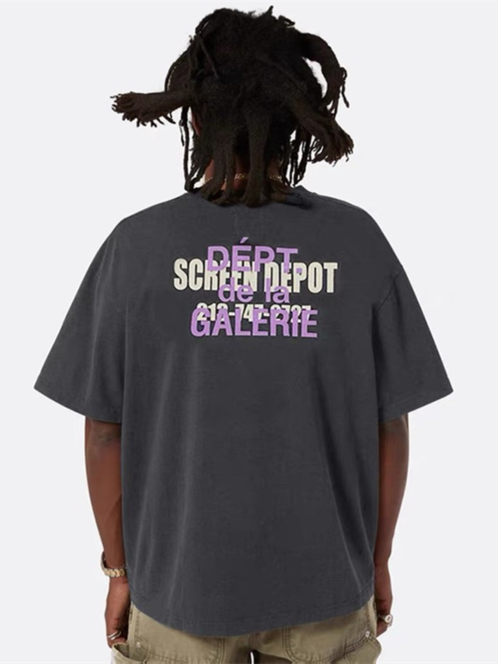 Le noir du t-shirt offre un support idéal au logo « G » distinctif, lui permettant de se démarquer sans être trop voyant. Le logo discret à l'intérieur du col ajoute une touche d'authenticité, soulignant la qualité et le savoir-faire associés à Gallery Dept.