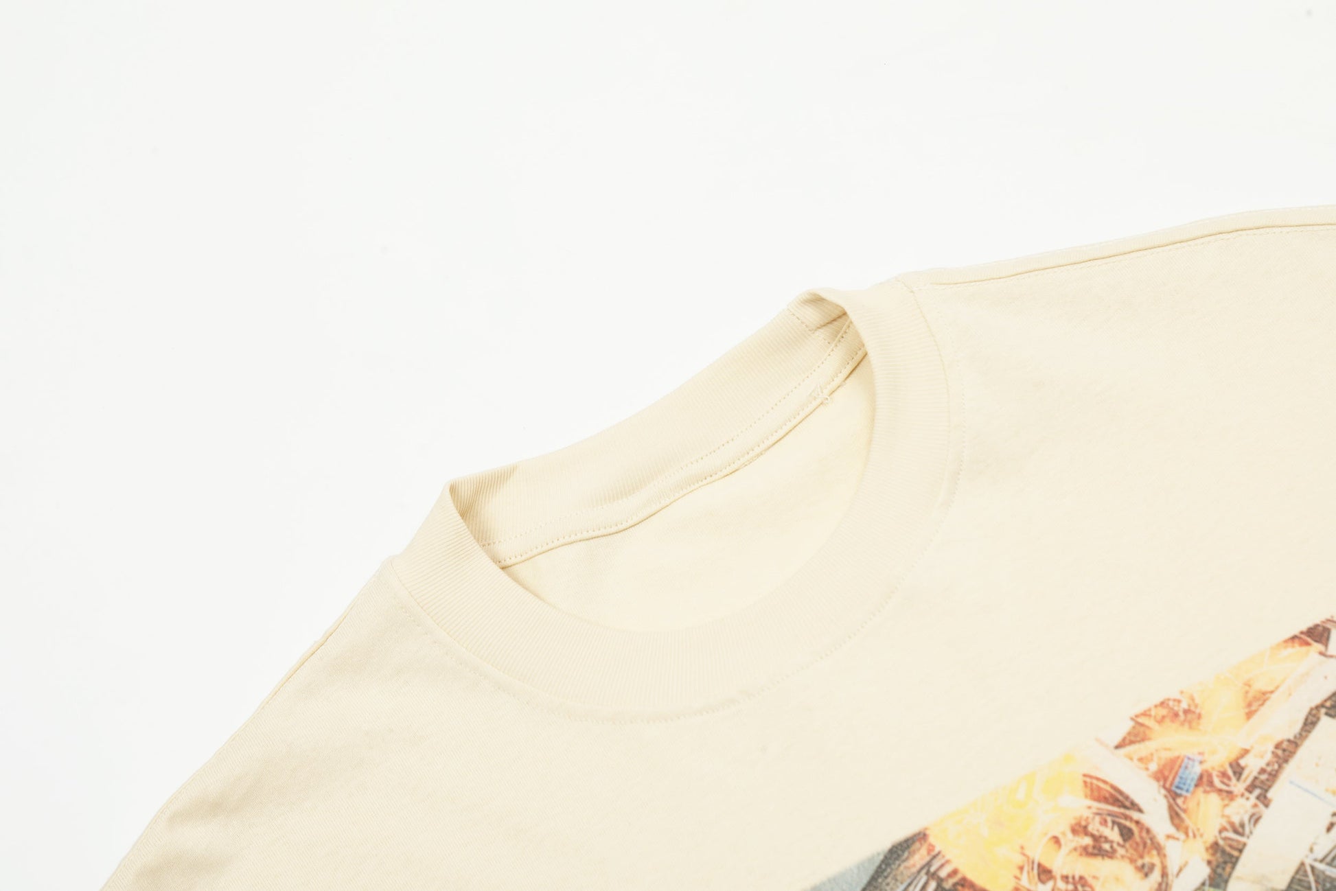 Le point fort de ce t-shirt réside dans son imprimé graphique audacieux, d'inspiration vintage, sur le devant. L'illustration présente un collage débridé d'objets rétro et d'instruments de musique, créant une ambiance à la fois nostalgique et moderne. Ses détails soignés et ses couleurs éclatantes en font une pièce unique, idéale pour les amateurs de créations originales et artistiques.