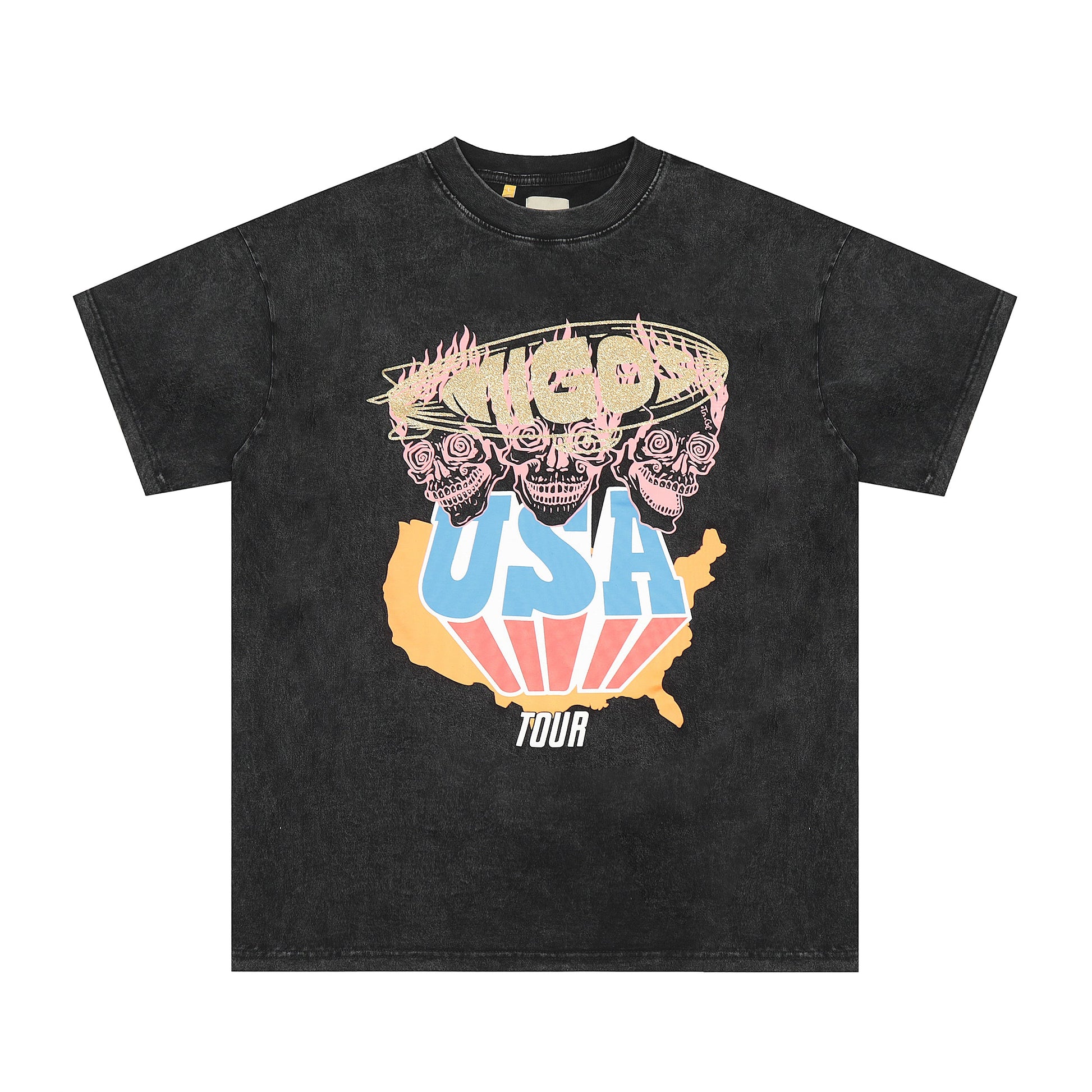 Ce t-shirt à la coupe décontractée offre une grande liberté de mouvement et un style casual. Son col rond et ses manches courtes lui confèrent un look intemporel, facile à associer avec un jean, un short, ou même sous une veste par temps frais. Que vous soyez mélomane ou amateur de streetwear, le t-shirt « USA Tour » de Gallery Dept. est idéal pour exprimer votre style unique et votre goût pour les designs audacieux et artistiques.