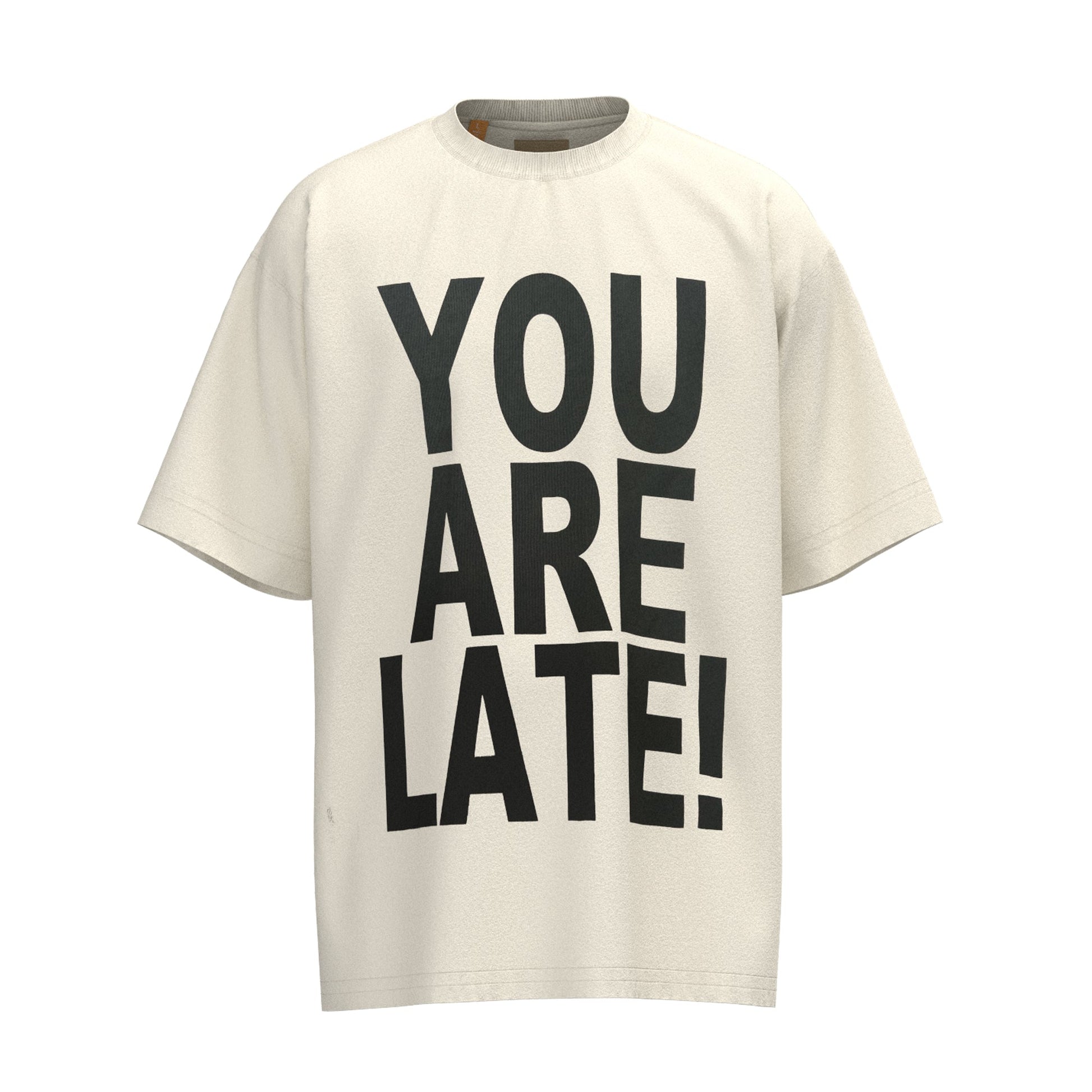 Affirmez votre style avec le t-shirt « Vous êtes en retard ! » de Gallery Dept. Ce modèle original est idéal pour celles et ceux qui souhaitent se démarquer et exprimer leur personnalité. L'avant du t-shirt arbore l'inscription percutante « VOUS ÊTES EN RETARD ! » en grandes lettres noires, pour un message clair et efficace.