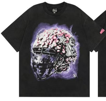 Conçu avec un col rond classique et une coupe décontractée, ce t-shirt offre une grande polyvalence. Ses détails usés lui confèrent une touche vintage et un aspect authentique, idéal pour les adeptes de la mode rétro et grunge. Le fond noir délavé met en valeur le motif, faisant de ce t-shirt une pièce remarquable qui complétera à merveille toute garde-robe.