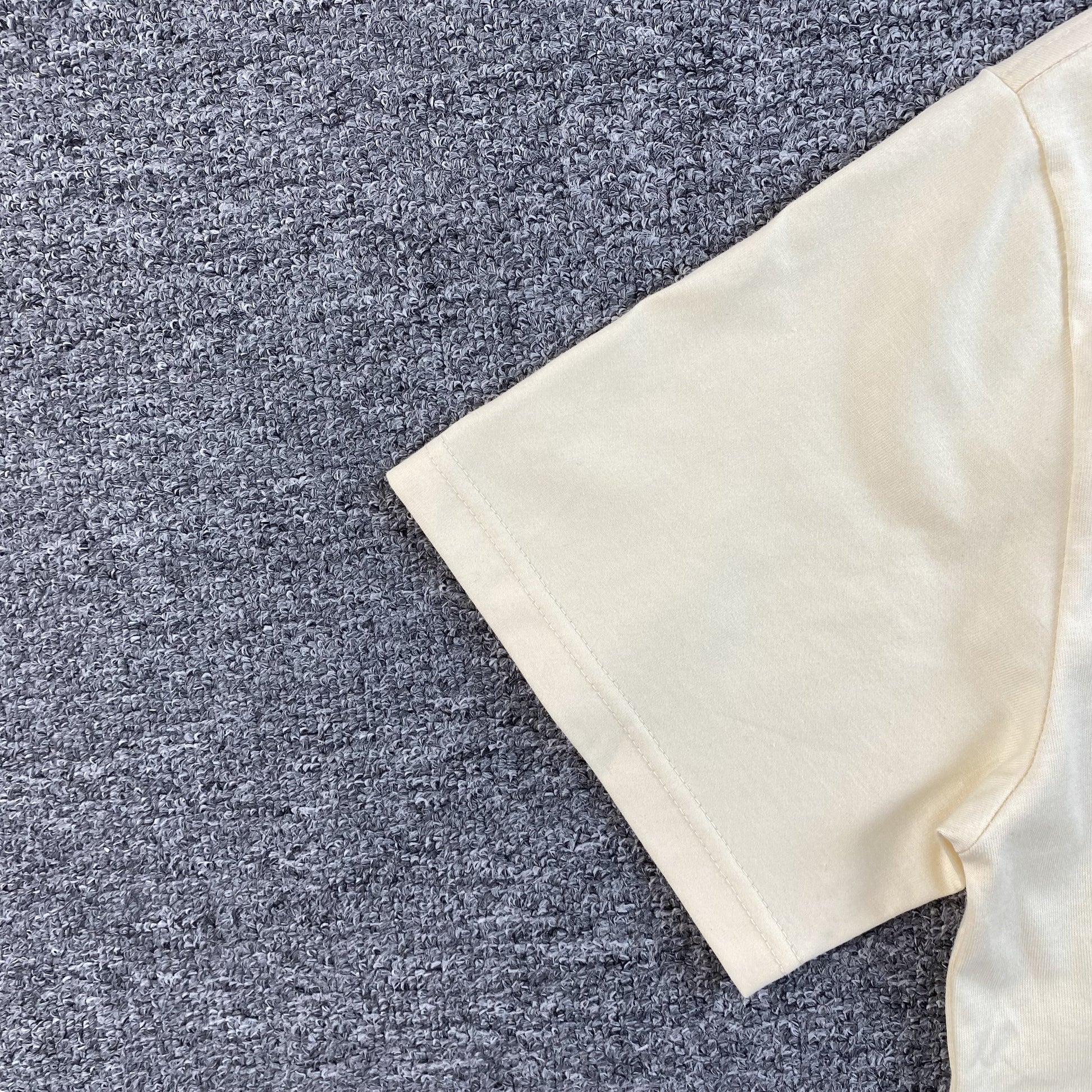 Confectionné en coton épais de qualité supérieure , ce t-shirt offre une sensation de douceur et de structure grâce à sa coupe oversize , garantissant un confort et une durabilité optimaux . Son fond couleur ivoire lui confère un style épuré d'inspiration vintage , mettant en valeur le motif contrasté avec profondeur et précision . Doté d'un col côtelé pour une résistance accrue et une longue durée de vie , ce t-shirt est conçu pour un style facile à porter et une grande polyvalence .