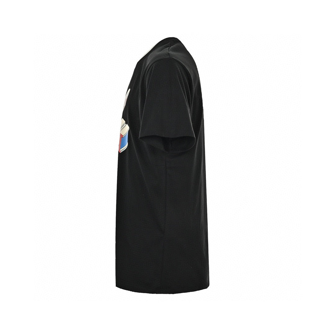 Ce t-shirt Gucci arbore un motif graphique audacieux où l'inscription « GUCCI 1921 » est mise en valeur par un style tridimensionnel coloré. Son coton noir de haute qualité offre un écrin parfait à ce visuel éclatant, faisant de ce t-shirt une pièce remarquable. Alliant luxe et fantaisie, il apporte une touche de modernité et de sophistication à toutes vos tenues décontractées.