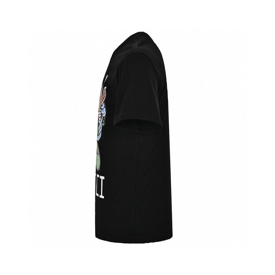 Ce t-shirt Gucci arbore un motif de dragon éclatant sur le devant. Son design coloré, mêlant différentes nuances de vert, de bleu et de rouge, crée un style audacieux et saisissant. Le t-shirt est noir, orné du logo iconique de la marque. Idéal pour affirmer son style.