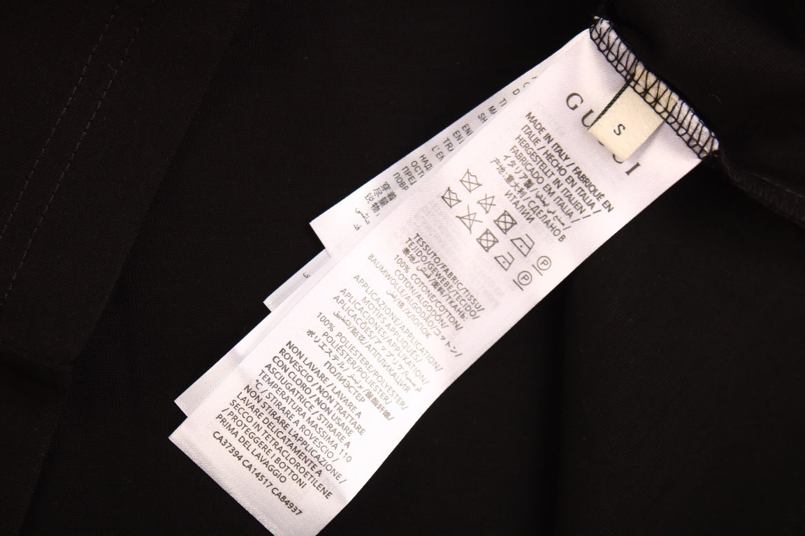 Ce t-shirt Gucci arbore un logo graphique saisissant. Noir, il est orné de plusieurs logos Gucci blancs et orange. Confectionné dans des matières de haute qualité, il allie style et confort. Idéal pour apporter une touche de créateur à vos tenues décontractées.