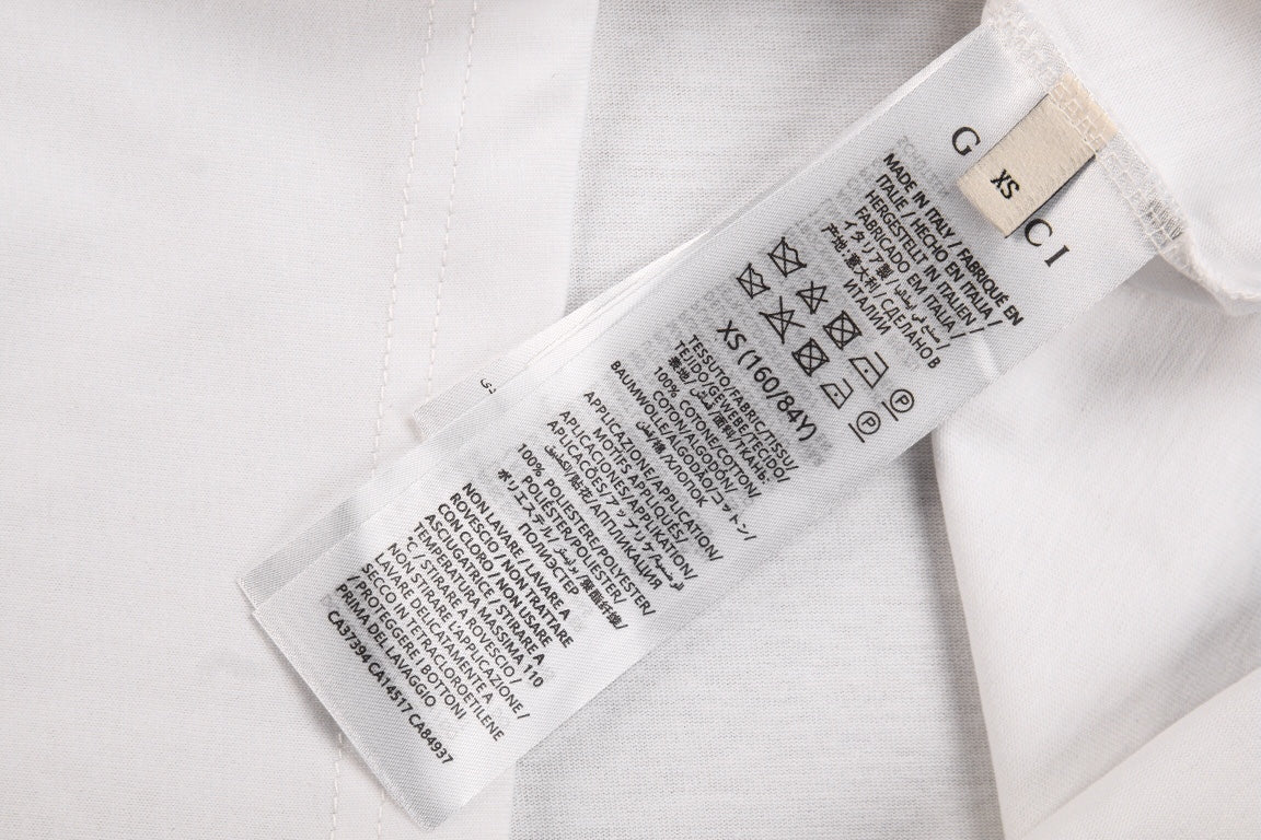 T-shirt blanc orné d'un logo Gucci audacieux en police rétro avec dégradé rose et jaune. Un design original, idéal pour un look décontracté et stylé. Confortable au quotidien.