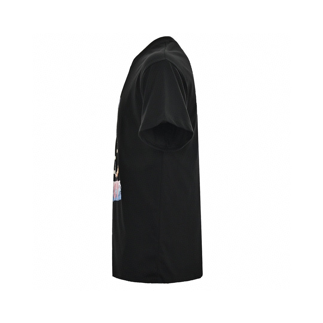 Ce t-shirt Gucci arbore un motif ludique et dynamique, orné d'un ours en peluche coloré et du logo Gucci. Le coton noir contraste joliment avec ce motif original, faisant de ce t-shirt une pièce tendance et amusante, idéale pour compléter n'importe quelle garde-robe. Son mélange de luxe et de fantaisie en fait un vêtement remarquable pour des looks à la fois décontractés et chics.