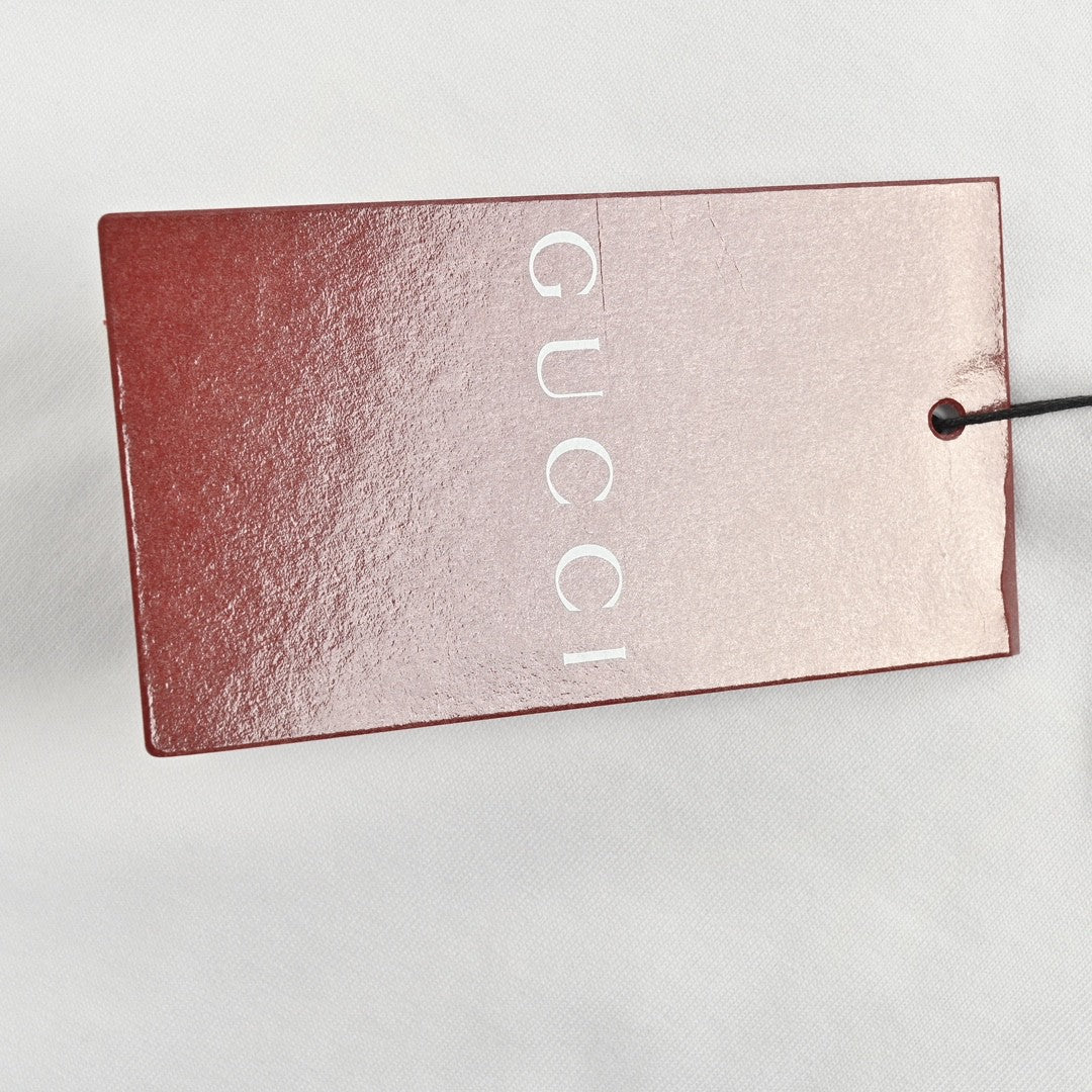 Le t-shirt blanc Gucci à logo vertical bleu allie à la perfection style classique et design moderne. Confectionné en coton premium, il offre une coupe douce et respirante, idéale au quotidien. Son design se distingue par un petit logo Gucci vertical bleu sur la poitrine, apportant une touche de raffinement discrète à la fois à la blancheur immaculée du tissu. Ce modèle minimaliste et élégant s'accorde facilement avec diverses tenues, des plus décontractées aux plus habillées. Parfait pour celles et ceux qui apprécient l'élégance discrète, ce t-shirt Gucci est un incontournable de toute garde-robe, alliant confort et style en toutes circonstances.