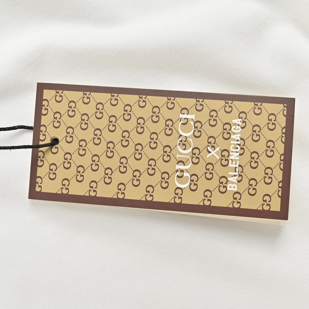 Le t-shirt blanc issu de la collaboration Gucci x Balenciaga est une pièce phare de cette collaboration très attendue entre les deux maisons de couture emblématiques. Ce t-shirt arbore un design audacieux et original : « GUCCI » est imprimé en grandes lettres colorées, tandis que « Balenciaga » est écrit en dessous dans un style manuscrit distinctif. Confectionné en coton de haute qualité, il offre une coupe confortable et décontractée, idéale au quotidien. La fusion du luxe classique de Gucci et du style avant-gardiste de Balenciaga crée un look unique et tendance, faisant de ce t-shirt un incontournable pour les passionnés de mode. Le logo de la collaboration au dos ajoute une touche d'exclusivité supplémentaire à cette pièce déjà élégante.