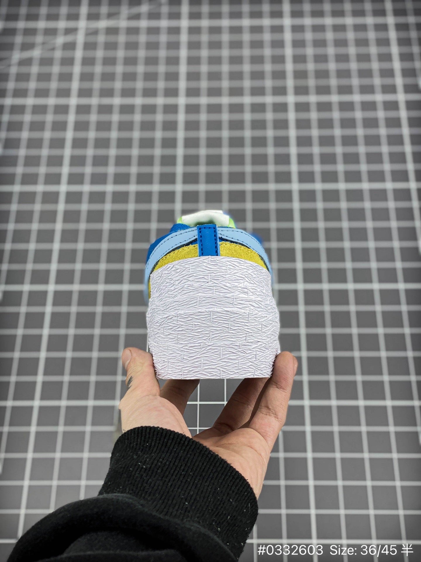 La KAWS x Sacai x Nike Blazer « Neptune Blue » allie design audacieux, couleur vibrante et savoir-faire innovant pour créer une sneaker véritablement unique. Cette Blazer basse réinvente la silhouette classique avec le style déstructuré emblématique de Sacai et la touche artistique de KAWS. L'empeigne est composée d'empiècements en cuir et daim premium d'un bleu Neptune saisissant, superposés pour un effet texturé et multidimensionnel. Les doubles Swoosh, les lacets doubles et les œillets superposés ajoutent de la profondeur et un dynamisme visuel saisissant. Le logo « XX » discret de KAWS est intégré au design, offrant une touche d'exclusivité et de créativité. La languette en mousse apparente rend hommage à l'héritage vintage de Nike, tandis que la semelle extérieure en caoutchouc résistant à chevrons assure une adhérence optimale. Parfaite pour les amateurs de chaussures audacieuses et inspirées par l'art, la KAWS x Sacai x Nike Blazer « Neptune Blue » est une fusion unique d'innovation et de style qui affirme une personnalité forte.