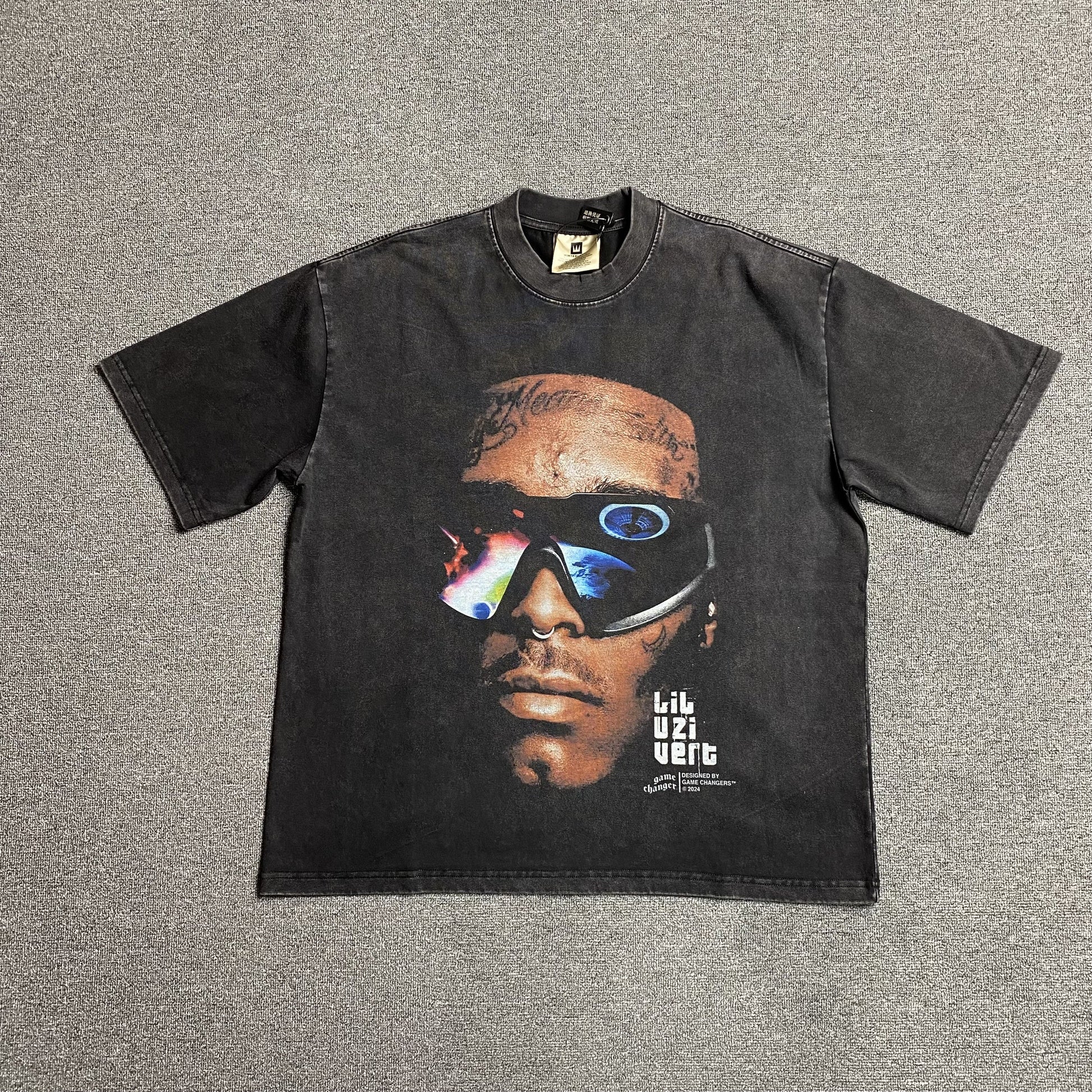 Le t-shirt graphique vintage gris foncé LIL UZI VERT (réplique) allie l'énergie du hip-hop à l'esthétique streetwear vintage , ce qui en fait un incontournable pour les fans d'Uzi et les passionnés de mode. Confectionné en coton doux au toucher de qualité supérieure , ce t-shirt offre un confort optimal et un aspect déjà porté , pour un style rétro authentique .