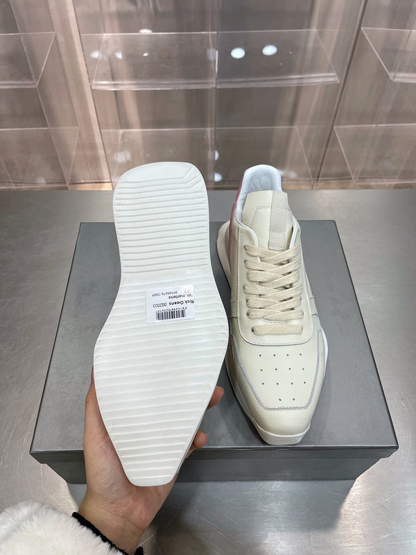 **Conception et matériaux** Ces baskets arborent une élégante empeigne en cuir blanc cassé, subtilement contrastée par un empiècement rose tendre au talon. Cette combinaison crée une esthétique sophistiquée et captivante. Le cuir de haute qualité garantit durabilité et confort luxueux, tandis que le design minimaliste et les lignes épurées apportent une touche d'élégance moderne. De discrètes perforations sur l'avant-pied optimisent la respirabilité et ajoutent une note raffinée.