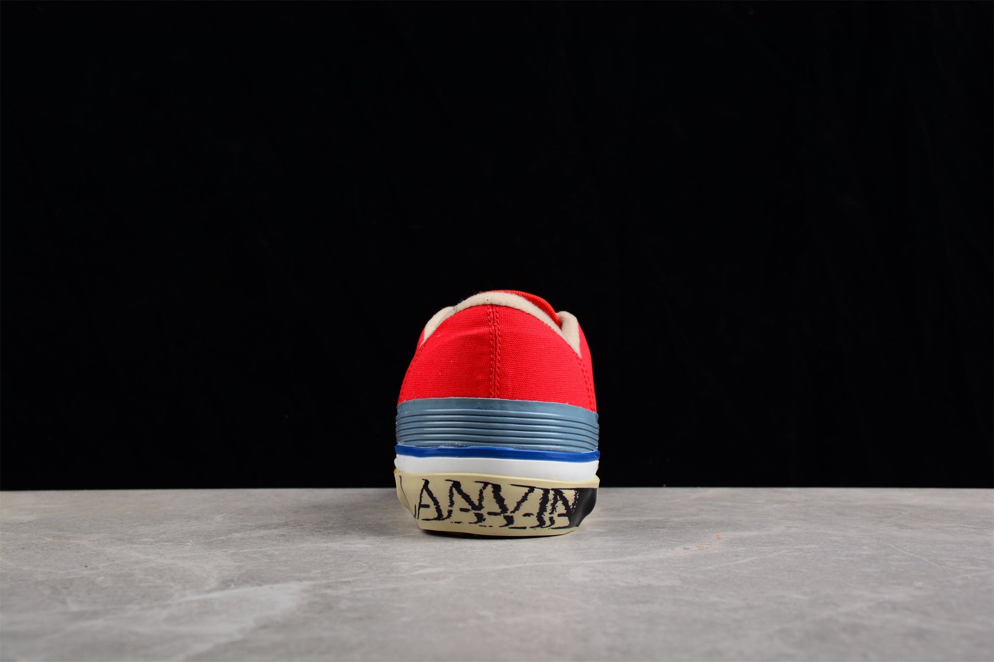 **Conception et fonctionnalités :** - **Coloris :** La base en toile rouge vif est ornée d'éclaboussures de peinture blanche ludiques, conférant aux baskets une touche artistique et dynamique. Le bout éclaboussé de couleurs vives ajoute une note d'originalité supplémentaire, permettant à ces chaussures de se démarquer. - **Semelle intermédiaire au design unique :** Ces baskets arborent une semelle intermédiaire multicouche distinctive, composée de segments beiges, bleus et blancs, pour un style visuellement saisissant. Ce design améliore non seulement l’esthétique, mais offre également un amorti supplémentaire pour un confort optimal. - **Système de laçage :** Dotées de lacets blancs résistants et d’œillets métalliques, ces baskets assurent un maintien sûr et ajustable. Le système de laçage permet de personnaliser facilement le serrage selon vos préférences. - **Semelle :** La semelle en caoutchouc présente un motif texturé pour une adhérence et une durabilité exceptionnelles, vous assurant une stabilité optimale. Sa conception unique contribue à l’esthétique générale, faisant de ces baskets une véritable pièce de caractère.
