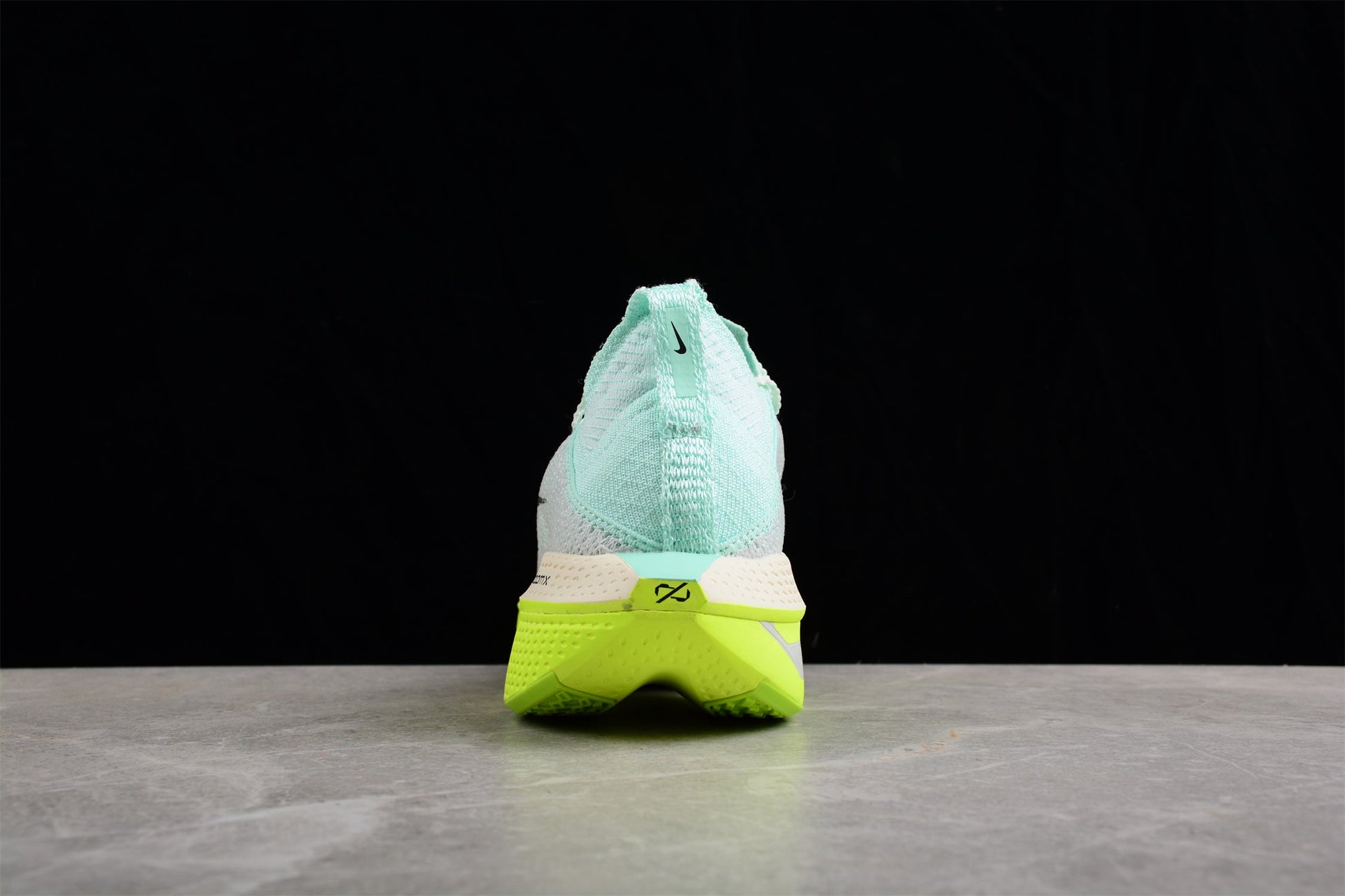 Découvrez la Nike Air Zoom Alphafly NEXT% 2, une chaussure de running de pointe conçue pour repousser les limites de la vitesse et de la performance. Ce modèle, arborant un coloris élégant vert menthe et jaune fluo, allie technologie avancée et esthétique audacieuse, ce qui la rend idéale pour les coureurs et les athlètes de haut niveau.