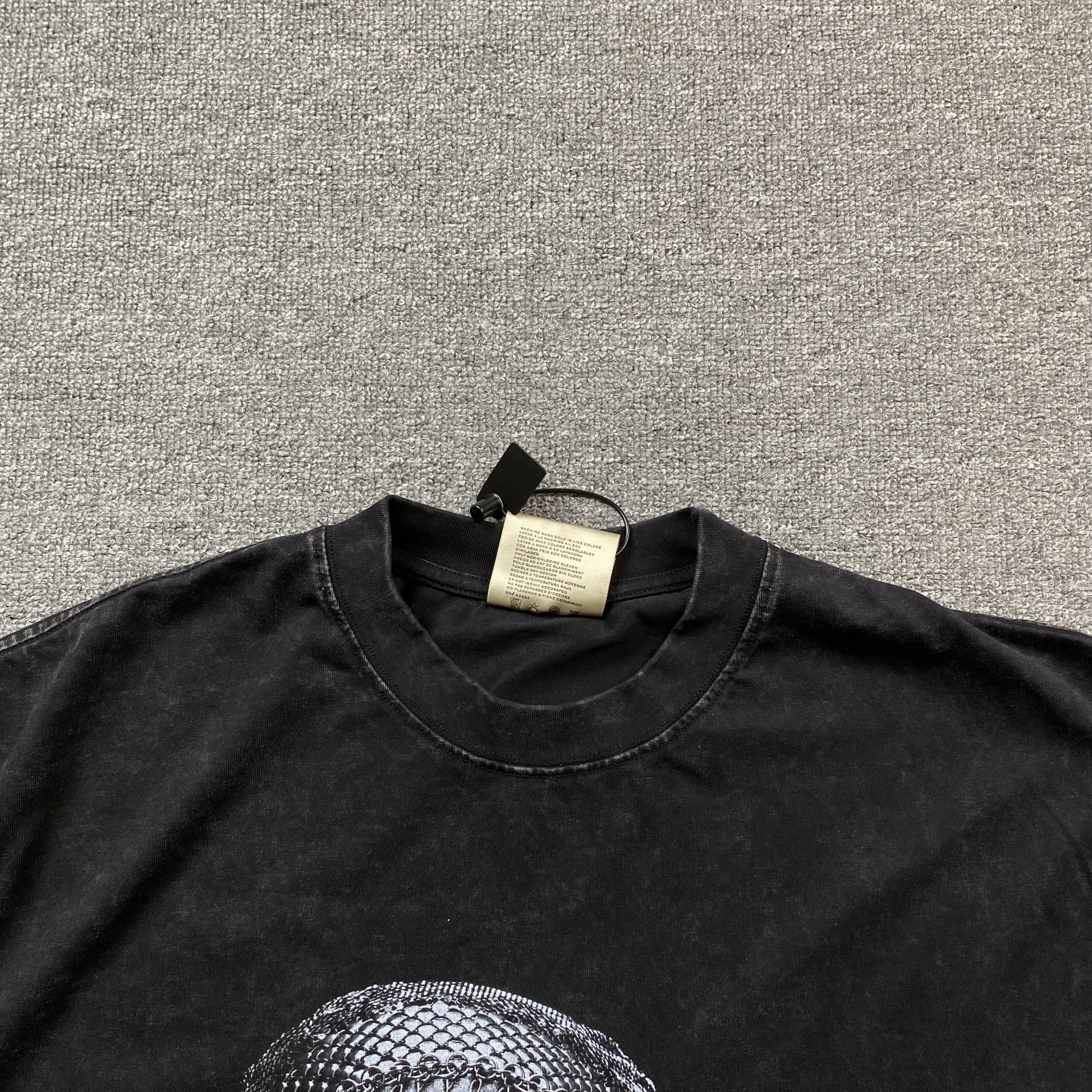 Featuring a faded, distressed graphic of A$AP Rocky, the washed dark grey colorway enhances its retro appeal, giving it the vibe of a classic tour tee. Designed with a relaxed fit, it’s ideal for pairing with cargos, denim, or layering under a jacket for a bold, fashion-forward look.