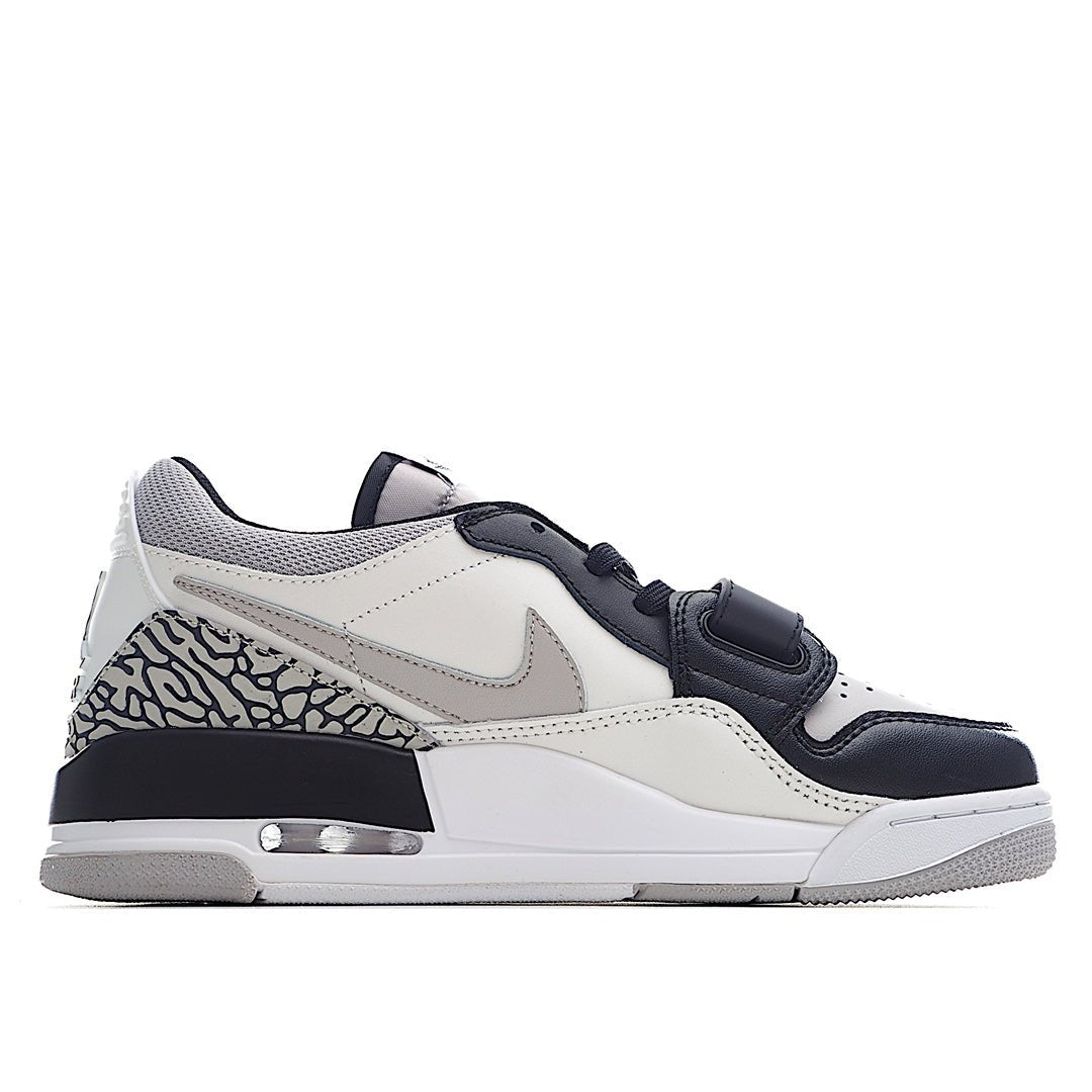 The upper is crafted from high-quality white leather, giving the sneaker a crisp and polished appearance. The signature patent leather mudguard, done in glossy black, adds a touch of luxury and provides a striking contrast to the clean white upper. This bold black-and-white combination brings a sense of sophistication and versatility, making the shoe suitable for both casual wear and more formal settings.