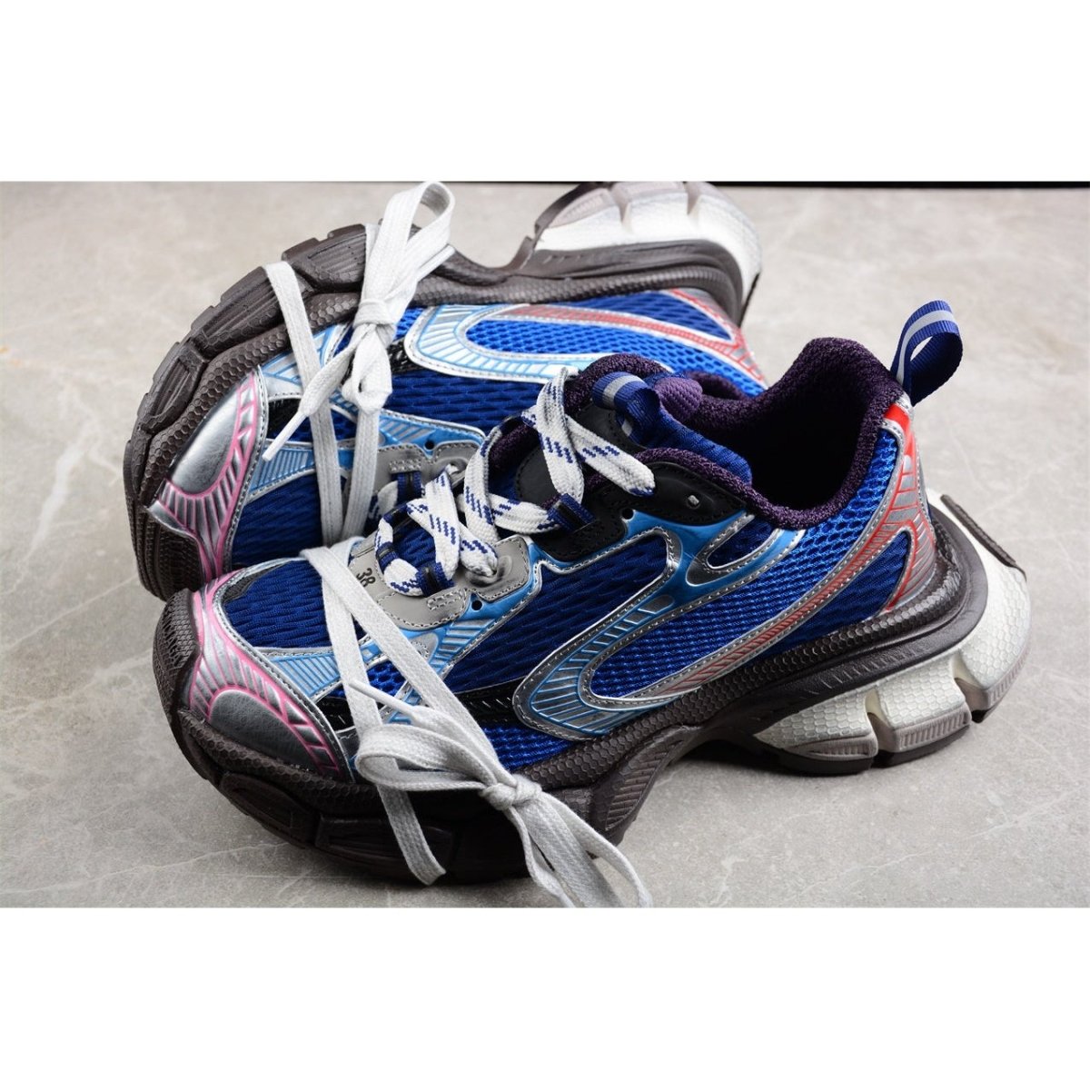 The BALENCIAGA 3XL x Royal Grey sneakers present a sophisticated fusion of sporty design and luxurious detailing. This edition features a refined grey color palette with royal blue accents that add a regal touch to the sleek, contemporary silhouette. The sneakers are crafted with a breathable mesh upper and supported by a cushioned sole, ensuring optimal comfort and performance. Distinctive branding is subtly integrated, enhancing the design's exclusivity without overwhelming its elegance. Ideal for those who seek footwear that combines everyday functionality with high-end fashion, the 3XL x Royal Grey offers a chic, versatile option for discerning sneaker aficionados.