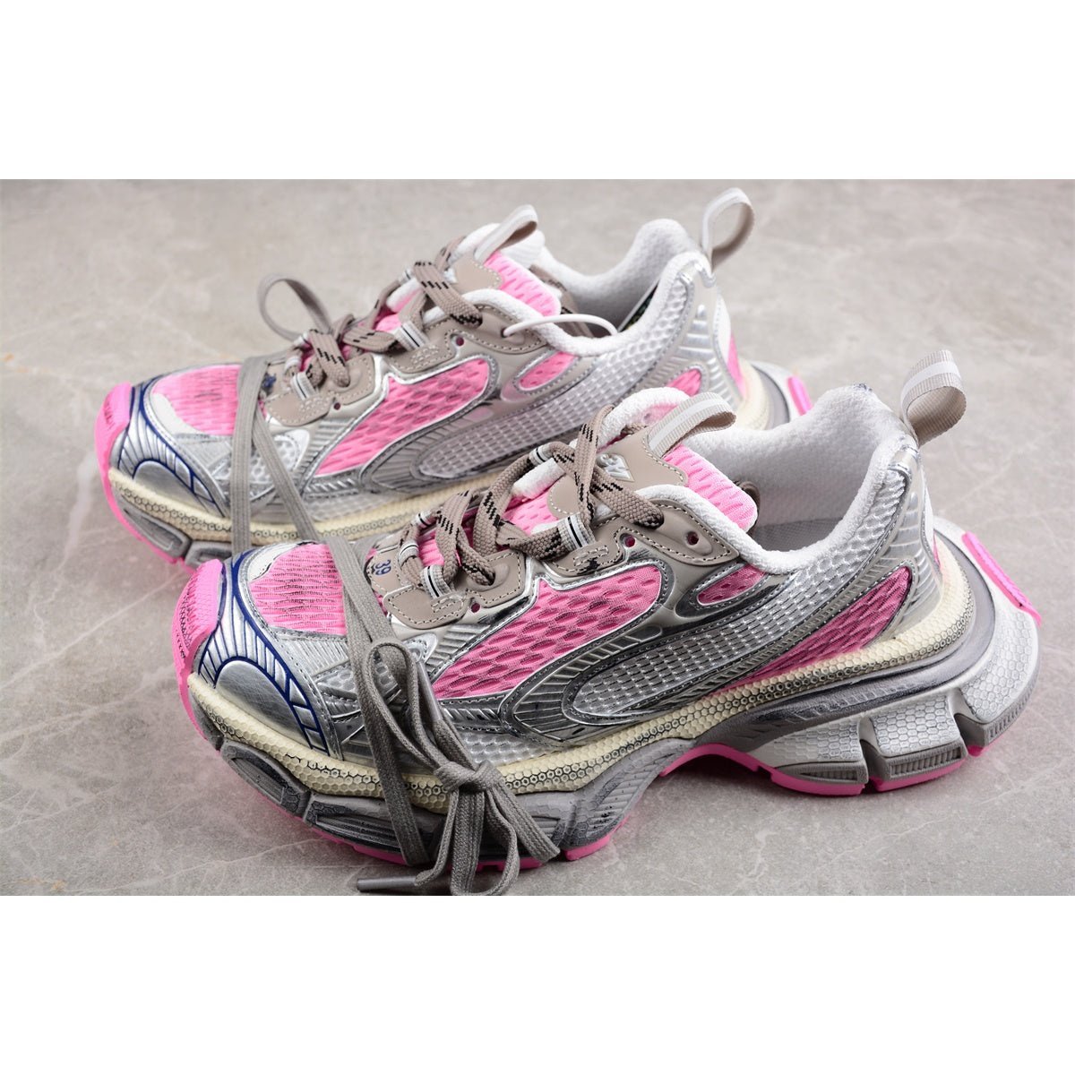The BALENCIAGA 3XL x Silver Pink sneakers blend futuristic design with a touch of femininity, presenting a striking colorway that stands out. These luxurious sneakers feature a shimmering silver base with soft pink accents, creating an elegant yet bold aesthetic. The signature oversized silhouette of the 3XL line is maintained, offering an exaggerated and eye-catching profile. Crafted from premium materials, the sneakers ensure durability and comfort, with a chunky, layered sole that provides excellent support and cushioning. Ideal for those who dare to make a statement, the 3XL x Silver Pink sneakers fuse high-fashion sensibility with innovative design.