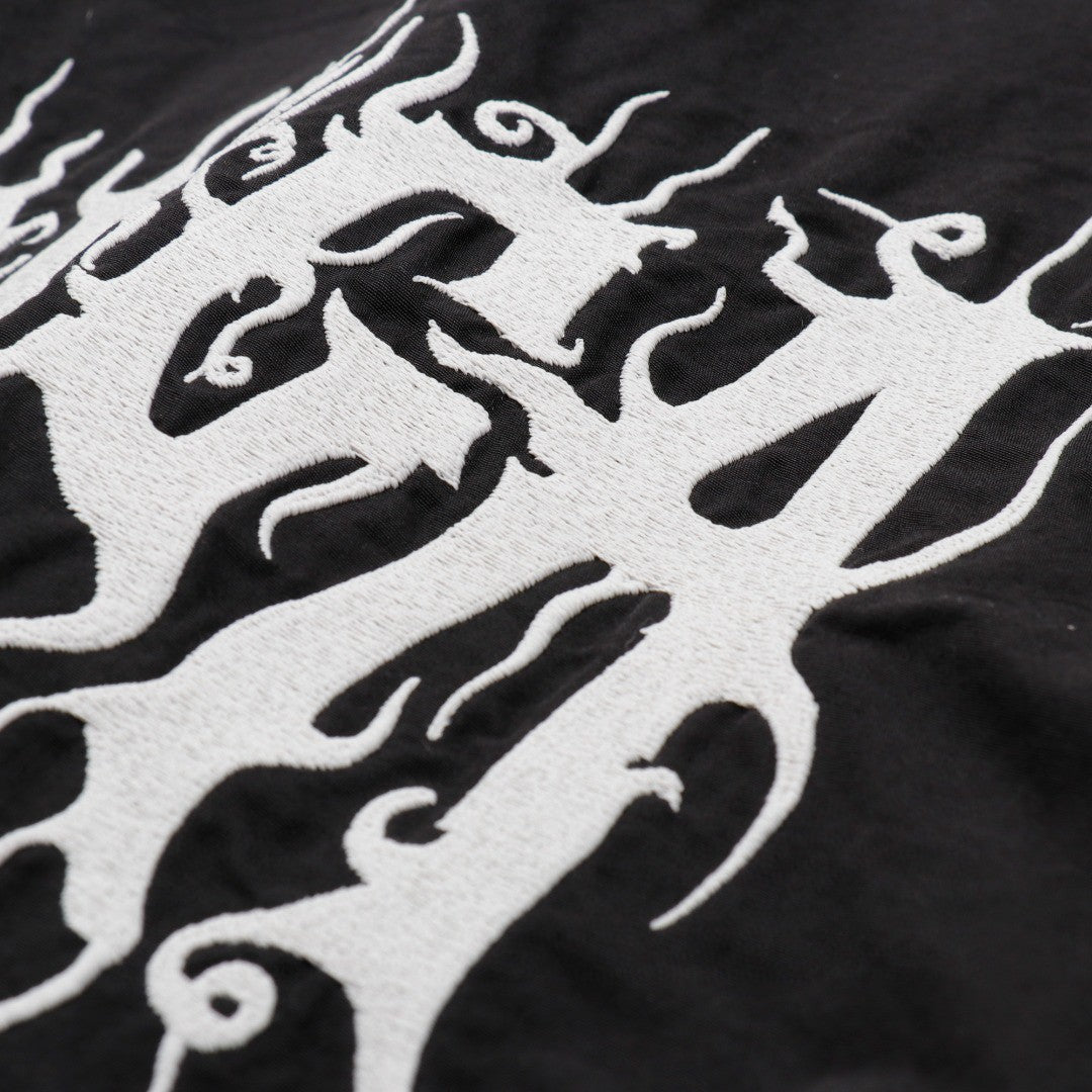 This Balenciaga jacket features a minimalist design in a sleek black color. It has a front zip closure and two side pockets. The lightweight material makes it perfect for layering. Ideal for a modern, understated look.
