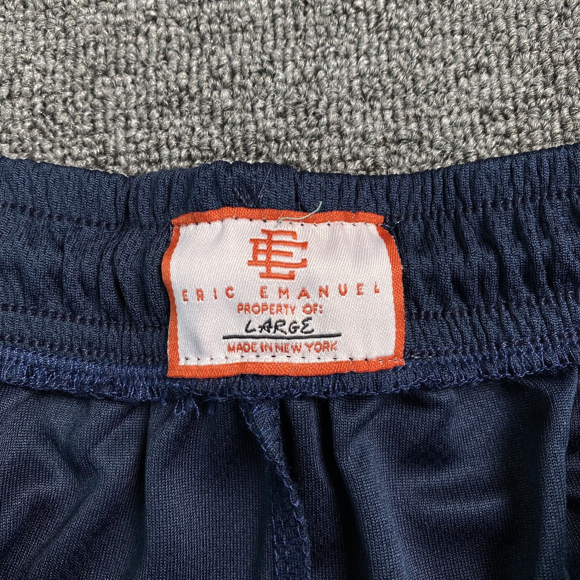 Featuring a deep navy base with mauve and yellow accents, these shorts showcase the signature EE logo, delivering a statement-making yet versatile look. The elastic waistband with an adjustable drawstring ensures a secure and customizable fit, making them ideal for lounging, basketball, or upgrading your streetwear game.