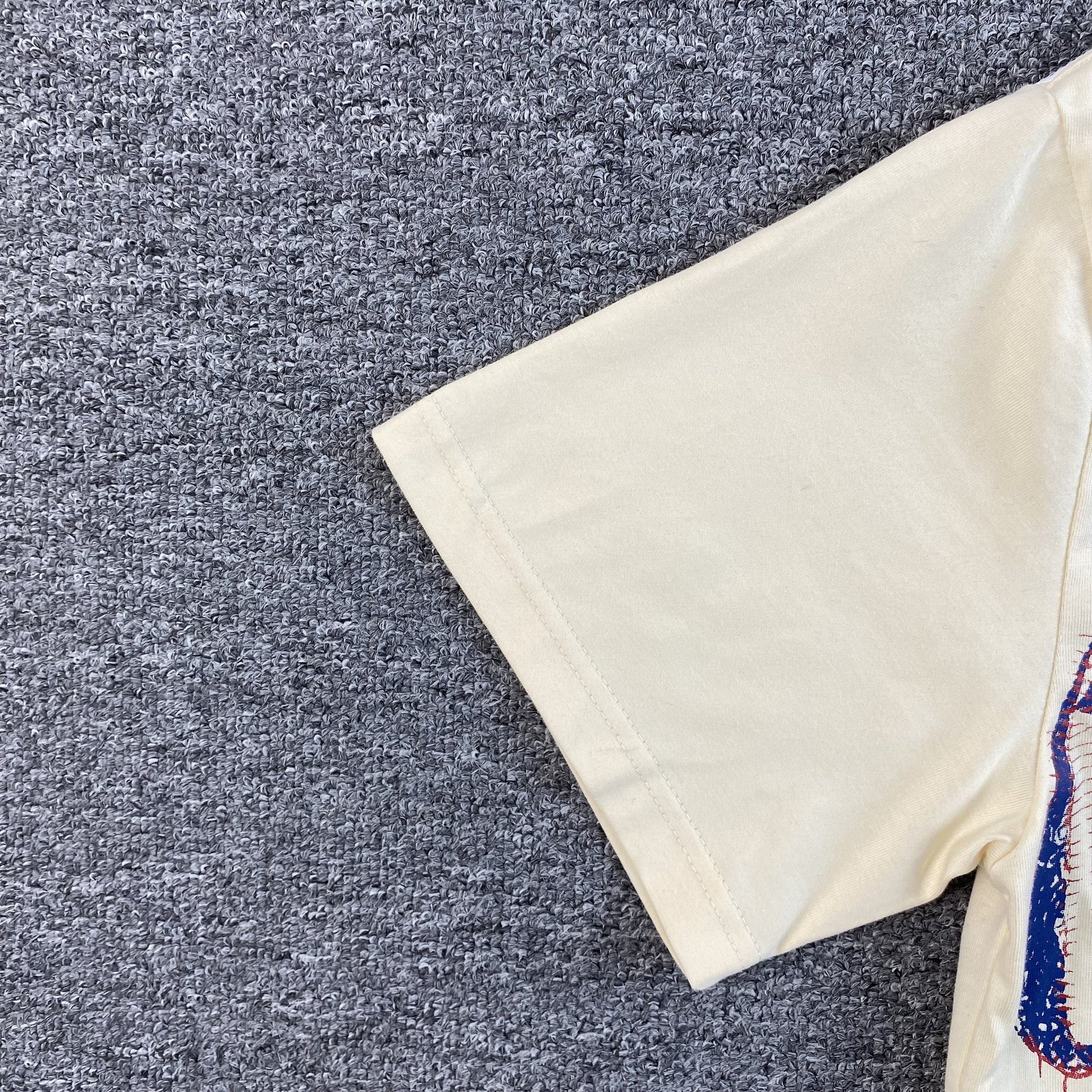 Crafted from premium heavyweight cotton, this t-shirt provides a soft, structured feel with an oversized fit, ensuring all-day comfort and durability. The bone-colored base delivers a clean, vintage-inspired aesthetic, allowing the high-contrast graphic to stand out with intensity. Designed with a ribbed collar for long-lasting wear and shape retention, this tee is both fashionable and built to last.