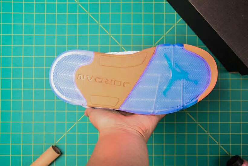 One of the most striking elements of the Air Jordan 5 ‘South Beach’ is the translucent blue outsole, which not only enhances the shoe’s aesthetic appeal but also offers superior traction and durability. The iconic shark-tooth detailing on the midsole is accented in orange, creating a sharp contrast against the teal, and bringing the entire design together.