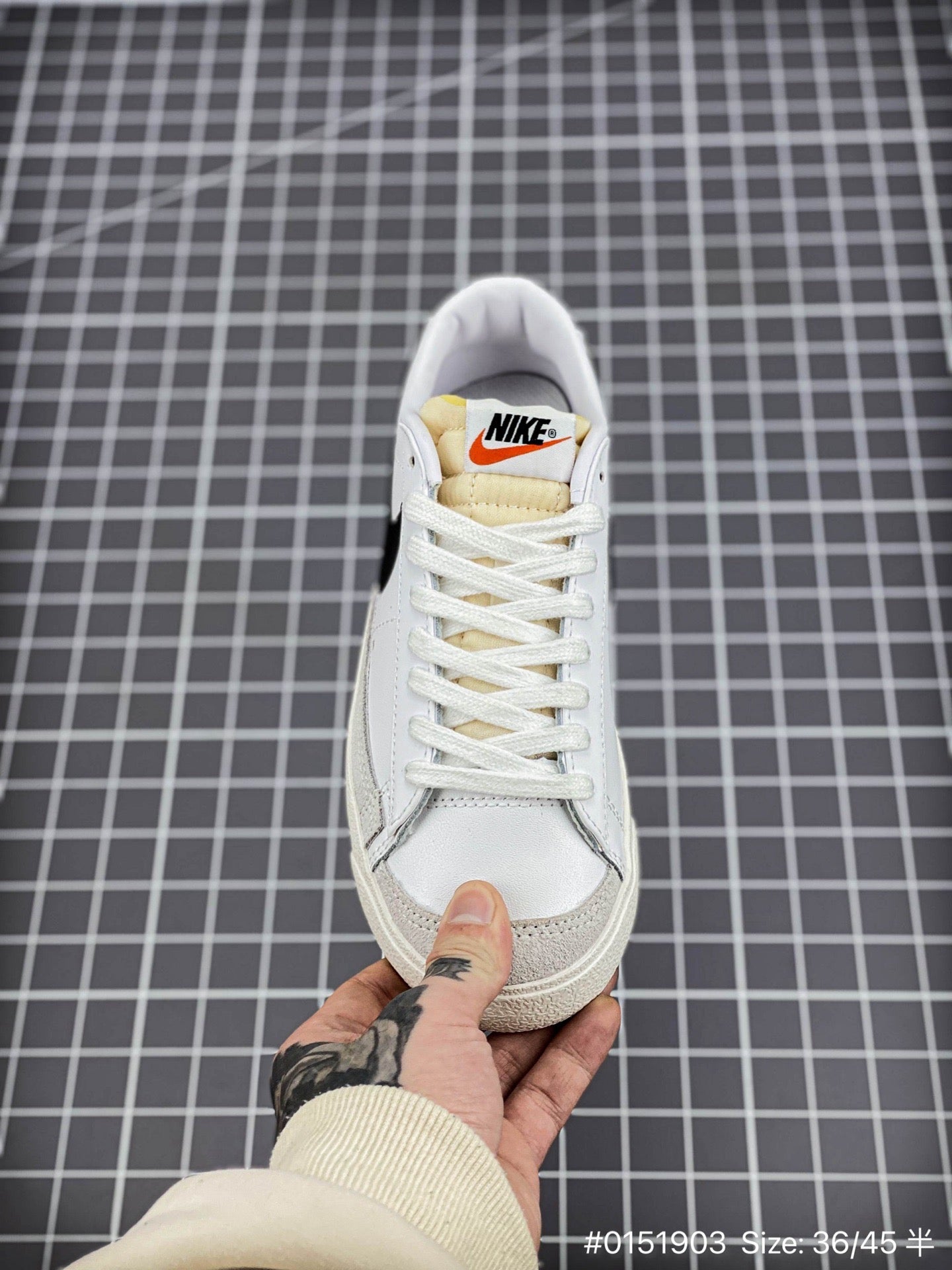 The Nike Blazer Low '1977 Vintage "Off-White" is a sophisticated twist on the classic silhouette, offering a subtle yet stylish look. The sneaker features a creamy off-white leather upper, exuding a vintage vibe that's both elegant and versatile. Suede overlays at the toe add texture and durability, enhancing the retro-inspired design. The tonal Swoosh and branding blend seamlessly with the muted palette, creating a refined, minimalist aesthetic. A low-profile cut ensures a sleek silhouette, while the padded collar provides exceptional comfort. The off-white midsole and durable herringbone-patterned outsole deliver reliable support and traction for everyday wear. Perfect for those who appreciate understated style with a touch of nostalgia, this Blazer Low is a versatile choice for dressing up or down, making it a timeless addition to any sneaker collection.