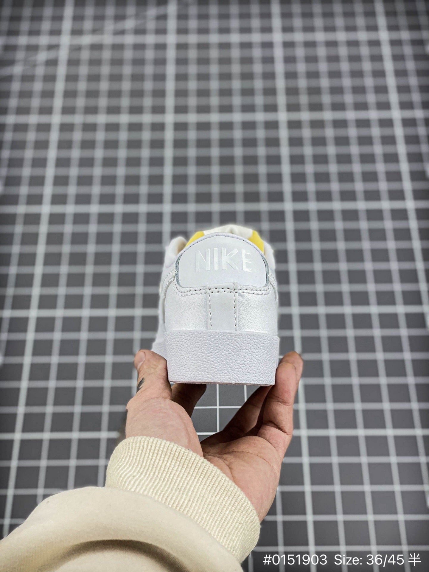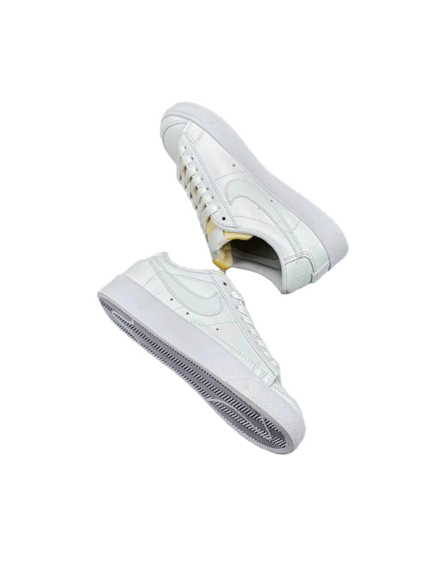 The Nike Blazer Low '1977 Synthetic Leather White offers a clean and modern take on the timeless Blazer silhouette. Crafted with a sleek synthetic leather upper, this design combines durability with a smooth, minimalist aesthetic. The all-white colorway is accented by subtle tonal stitching, adding depth while maintaining a crisp, streamlined look. Suede overlays at the toe lend a vintage-inspired touch, while the low-cut profile ensures a casual, versatile appeal. A cushioned collar enhances comfort, and the durable rubber outsole with a classic herringbone pattern provides excellent traction. Perfect for everyday wear, this all-white Blazer Low is a wardrobe staple that pairs effortlessly with any outfit, blending heritage style with contemporary functionality for a fresh, polished vibe.