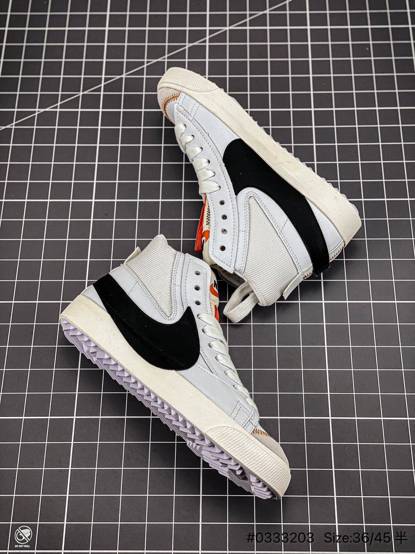 The Nike Blazer Mid '1977 Jumbo "Deconstructed Comfort" in White and Black takes the classic Blazer to new heights with bold design elements and enhanced comfort. The crisp white leather upper is accented by an oversized black Swoosh, delivering a striking, modern aesthetic. Exaggerated stitching and deconstructed details, like the exposed foam tongue and raw-edge materials, add a unique, unfinished look that nods to the sneaker’s vintage roots. Grey suede overlays at the toe provide added durability, while the padded collar ensures a snug and comfortable fit. The larger midsole design enhances cushioning and adds a touch of playful proportion. Finished with a durable rubber outsole featuring a herringbone traction pattern, this sneaker is perfect for everyday wear. The "Deconstructed Comfort" Blazer Mid combines heritage style with contemporary innovation, making it a standout piece for those who value both fashion and functionality.